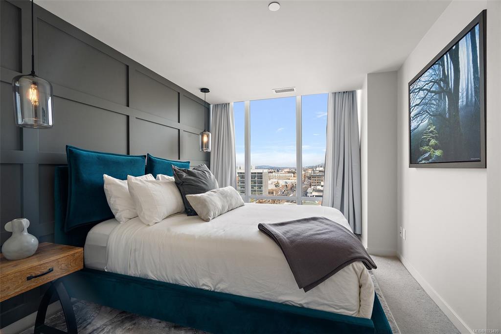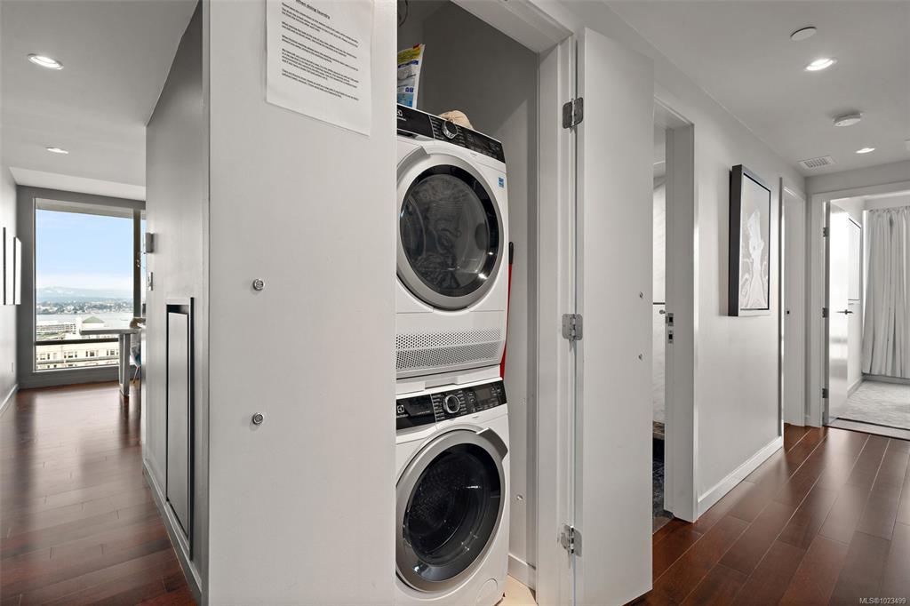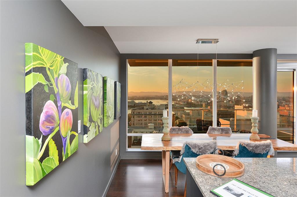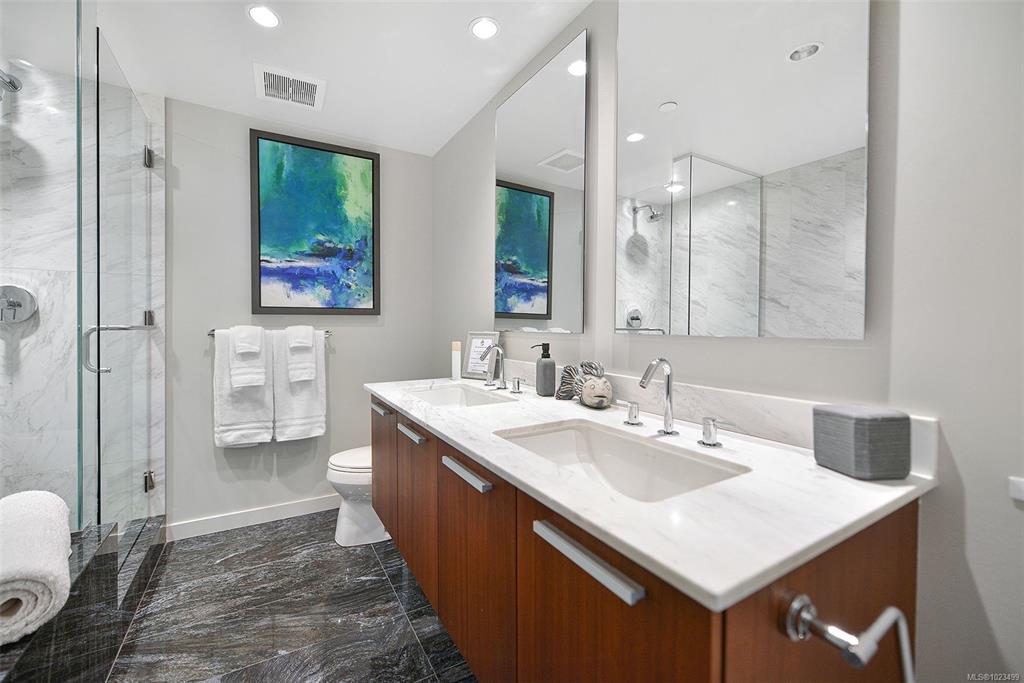 Experience the epitome of luxury living at The Falls, an exclusive residence perched on the 16th floor in the dynamic Inner Harbour. Upon entering this expansive 2-bedroom + den suite, you'll be captivated by breathtaking views of sunsets over the Inner Harbour, the peaceful Strait of Juan de Fuca, or the majestic Olympic Mountains. This west-facing sanctuary provides a tranquil retreat with high end features including air conditioning and a wrap around balcony. Indulge in the sleek, contemporary kitchen eq...