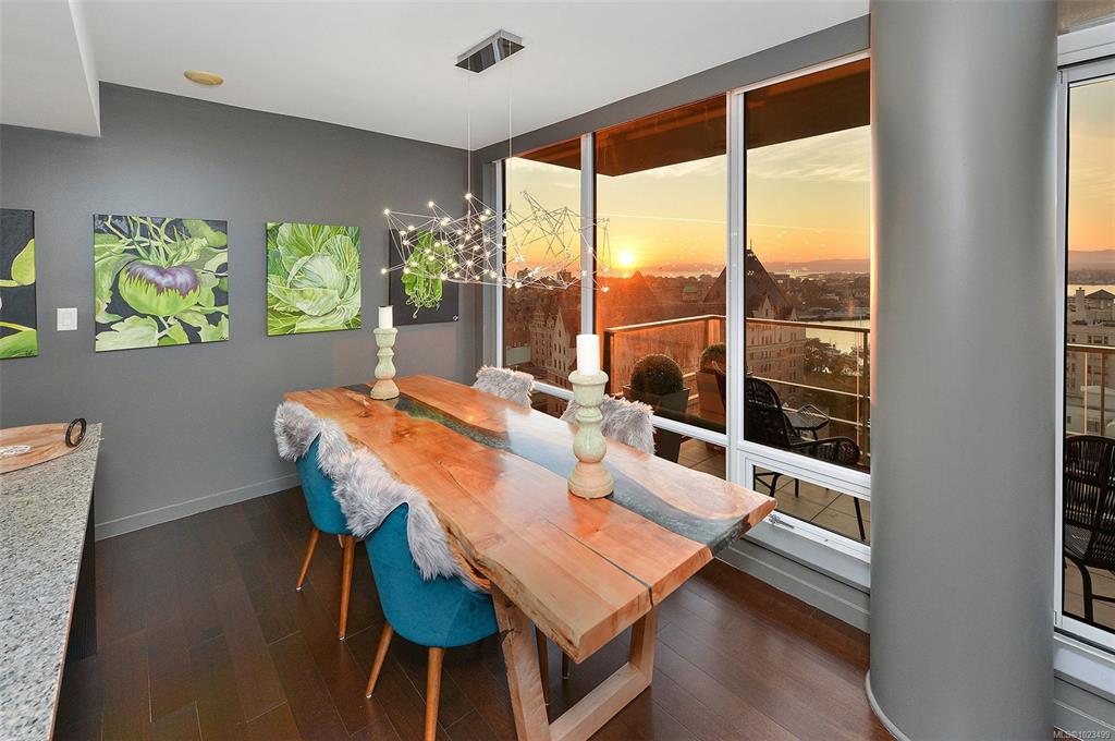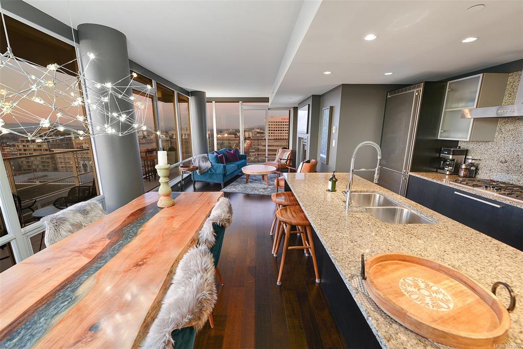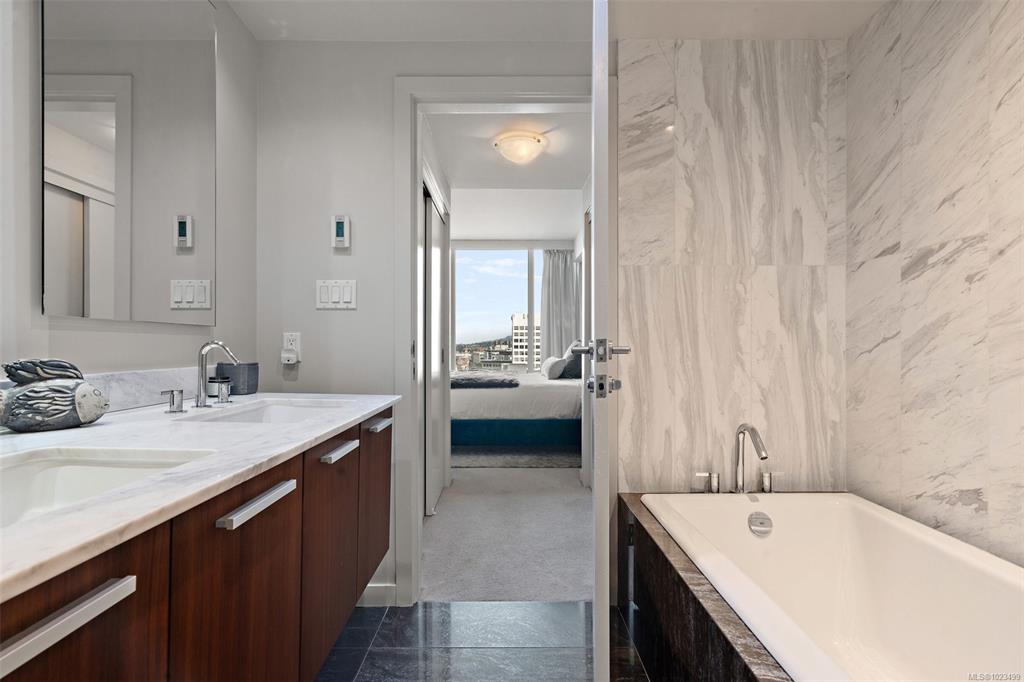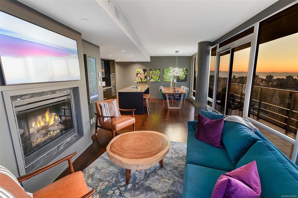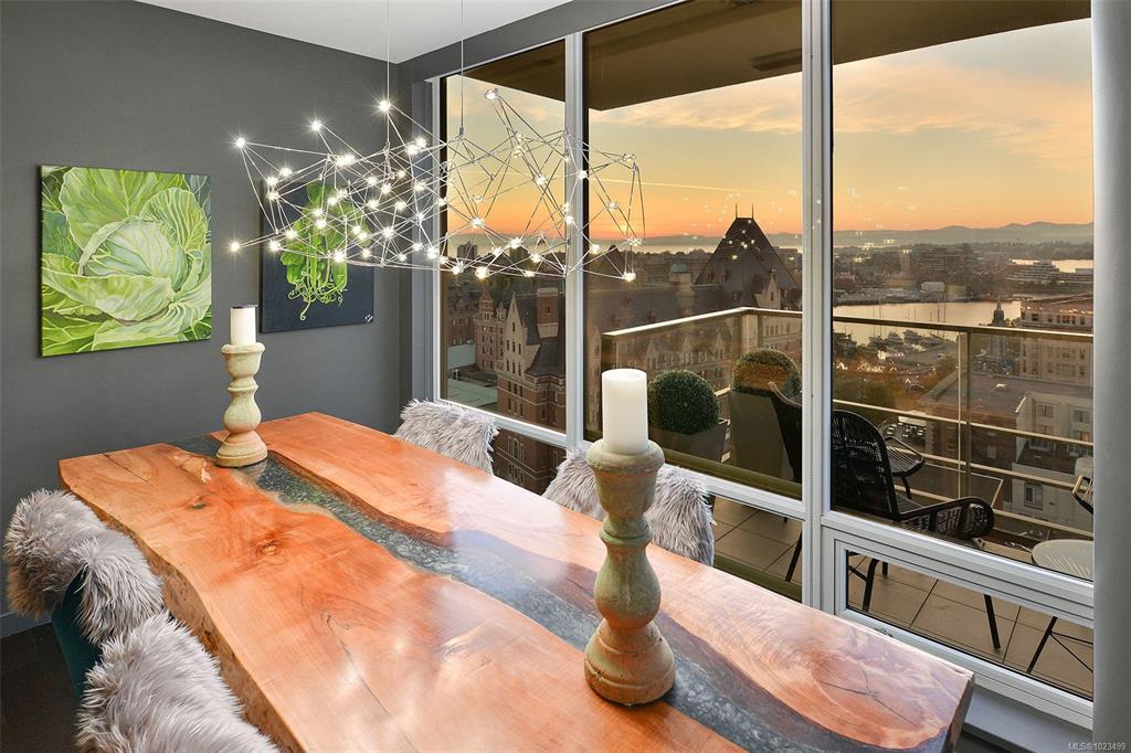 Experience the epitome of luxury living at The Falls, an exclusive residence perched on the 16th floor in the dynamic Inner Harbour. Upon entering this expansive 2-bedroom + den suite, you'll be captivated by breathtaking views of sunsets over the Inner Harbour, the peaceful Strait of Juan de Fuca, or the majestic Olympic Mountains. This west-facing sanctuary provides a tranquil retreat with high end features including air conditioning and a wrap around balcony. Indulge in the sleek, contemporary kitchen eq...