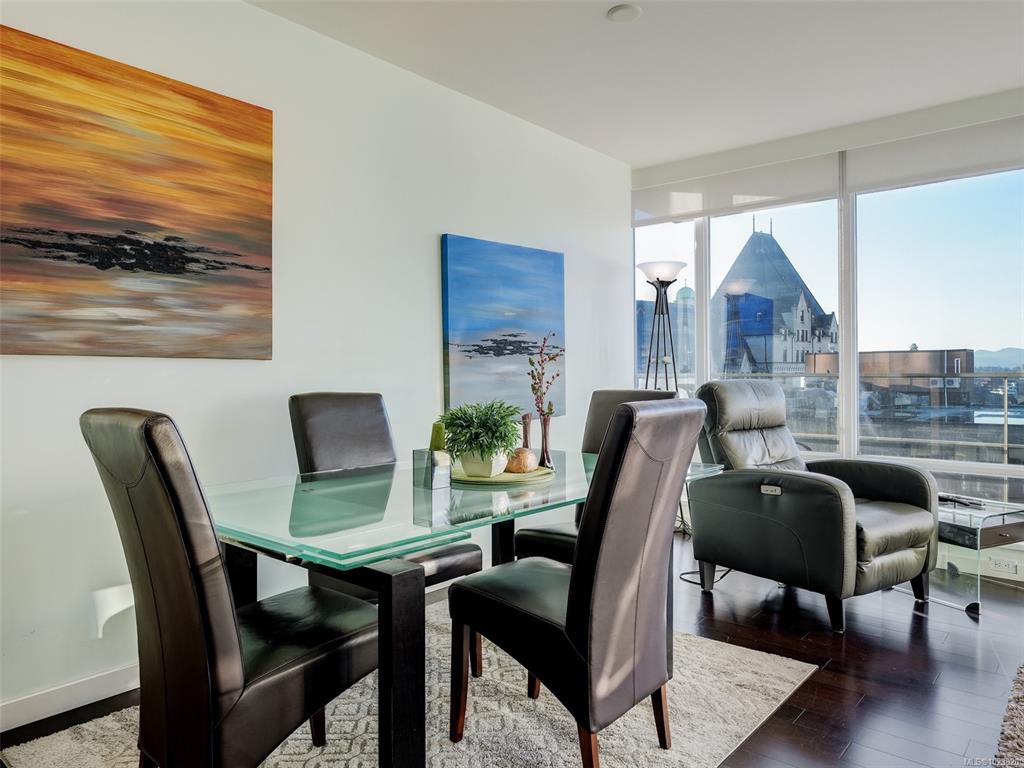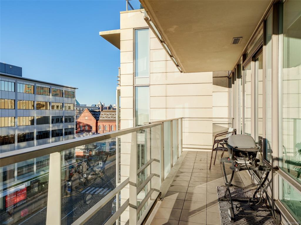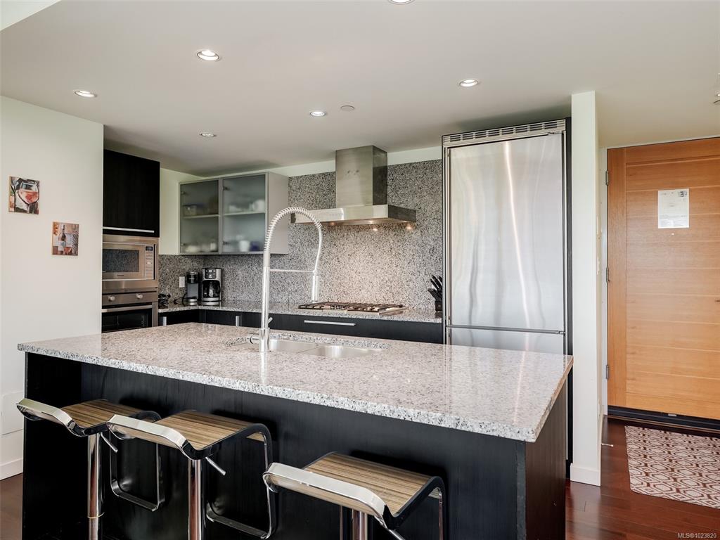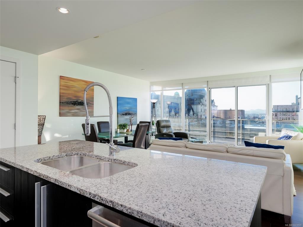 Welcome to The Falls and this exceptional 8th floor, west-facing 2 BR / 2 BA condo in the heart of downtown Victoria. Floor-to-ceiling windows fill the home with natural light while showcasing panoramic city views, including the landmark Empress Hotel and distant mountains. The open-concept design features granite countertops, stainless steel appliances with gas range, engineered hardwood flooring, and in-suite laundry—offering a refined balance of style and function. The spacious primary bedroom includes a...