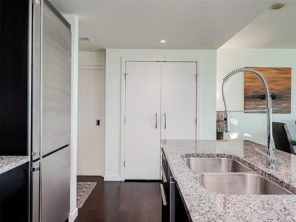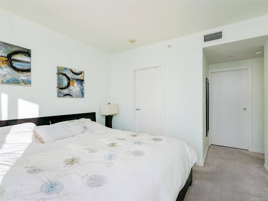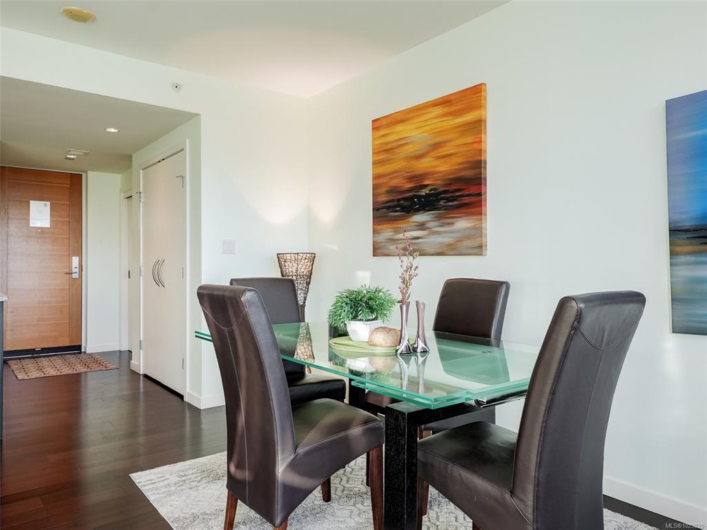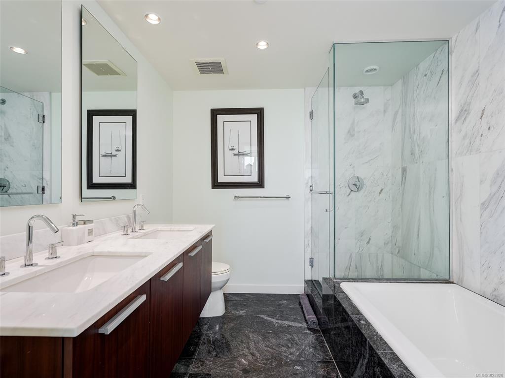 Welcome to The Falls and this exceptional 8th floor, west-facing 2 BR / 2 BA condo in the heart of downtown Victoria. Floor-to-ceiling windows fill the home with natural light while showcasing panoramic city views, including the landmark Empress Hotel and distant mountains. The open-concept design features granite countertops, stainless steel appliances with gas range, engineered hardwood flooring, and in-suite laundry—offering a refined balance of style and function. The spacious primary bedroom includes a...