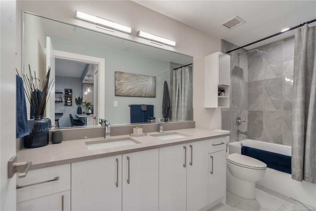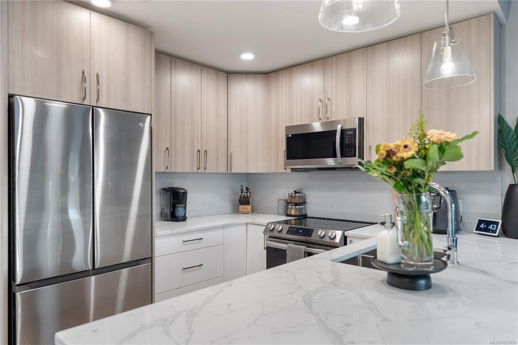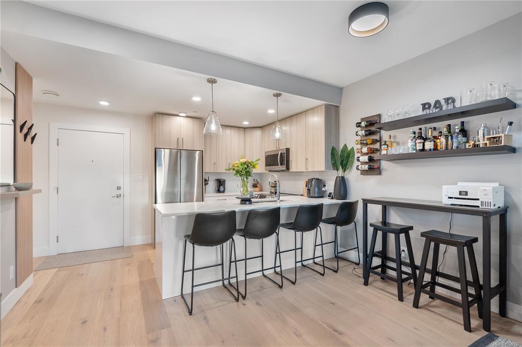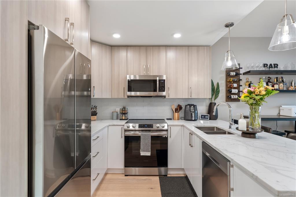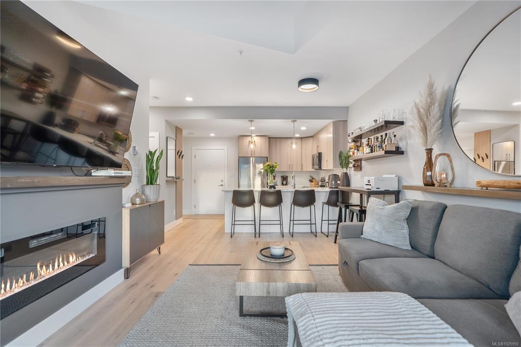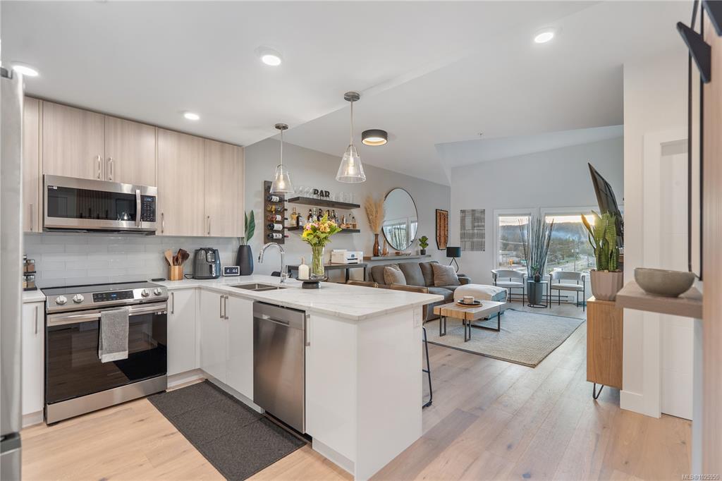 Top-floor living in the heart of Brentwood Bay. This spacious 1-bedroom, 1-bath suite features vaulted ceilings, hardwood floors, quartz countertops, in-suite laundry, and a large west-facing balcony to enjoy the evening sun. Custom designer touches throughout add a polished, elevated feel. The Wallace is a modern, energy-modelled building offering superior soundproofing, secure underground parking, a storage locker, and shared EV charging. Pets and rentals are welcome. Enjoy seaside trails, local dining, s...