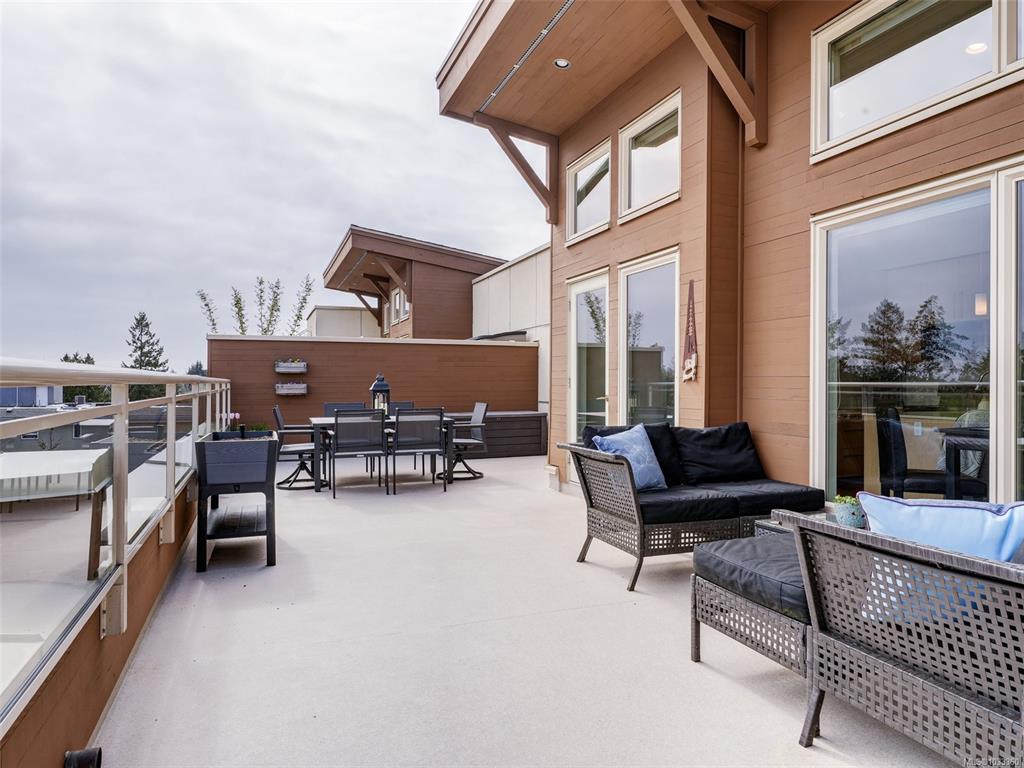 Welcome to Brentwood Place Village, one of the most sought-after complexes in beautiful Brentwood Bay. This south east facing penthouse condo offers 2 beds, 2 baths, open concept living & modern, high-quality finishes including quartz countertops, bar seating, and stainless-steel appliances. Vaulted ceilings and huge windows create a refreshingly light and spacious atmosphere. The patio door opens to the main feature, a 643 square foot southeast facing, wrap-around balcony - the ideal space for a peaceful m...