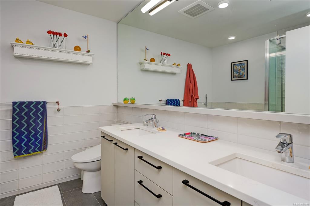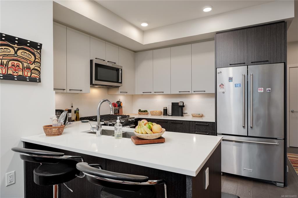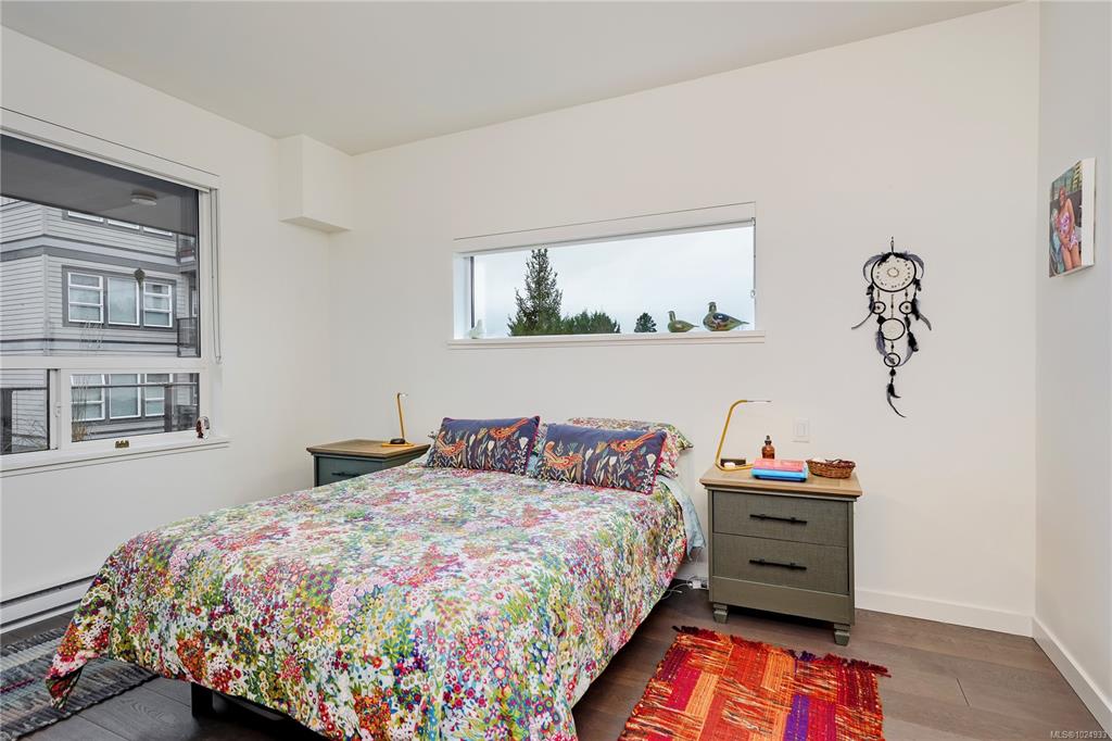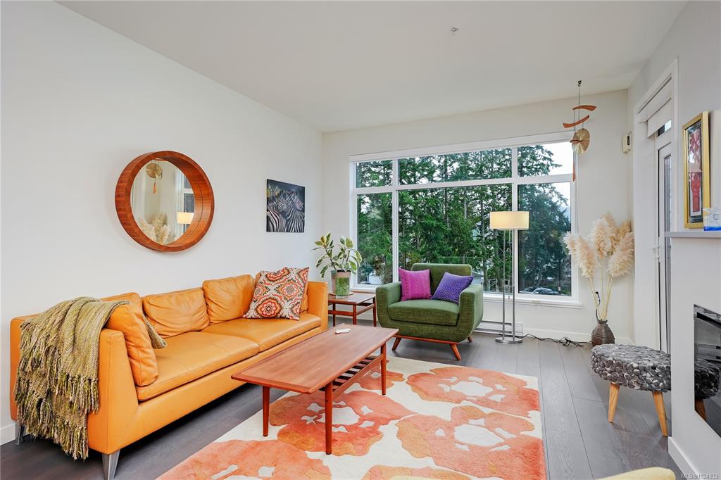 Bright, modern, on a sunny corner facing the quiet back side of the building, this spacious condo offers a layout that’s both functional and inviting. Enjoy open-concept living with 9’ ceilings, a quartz kitchen with gas range, a cozy electric fireplace, and a larger-than-usual corner balcony perfect for catching sunrises, sunsets - and the fireworks from Butchart Gardens. The 2 bedrooms are placed on opposite sides for privacy, including a tranquil primary retreat with a 5-piece ensuite featuring heated fl...