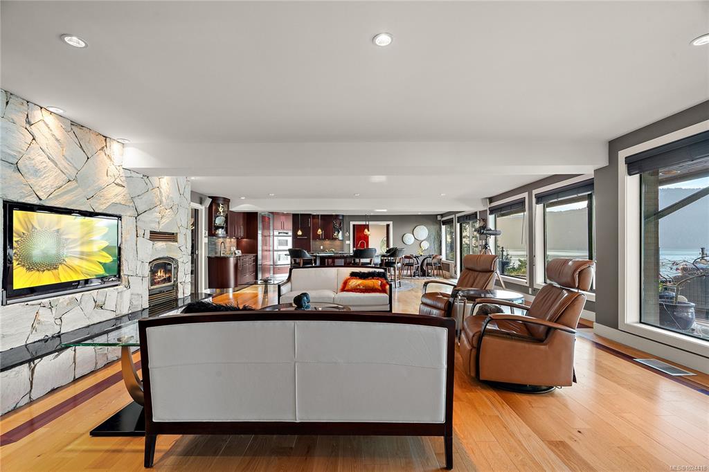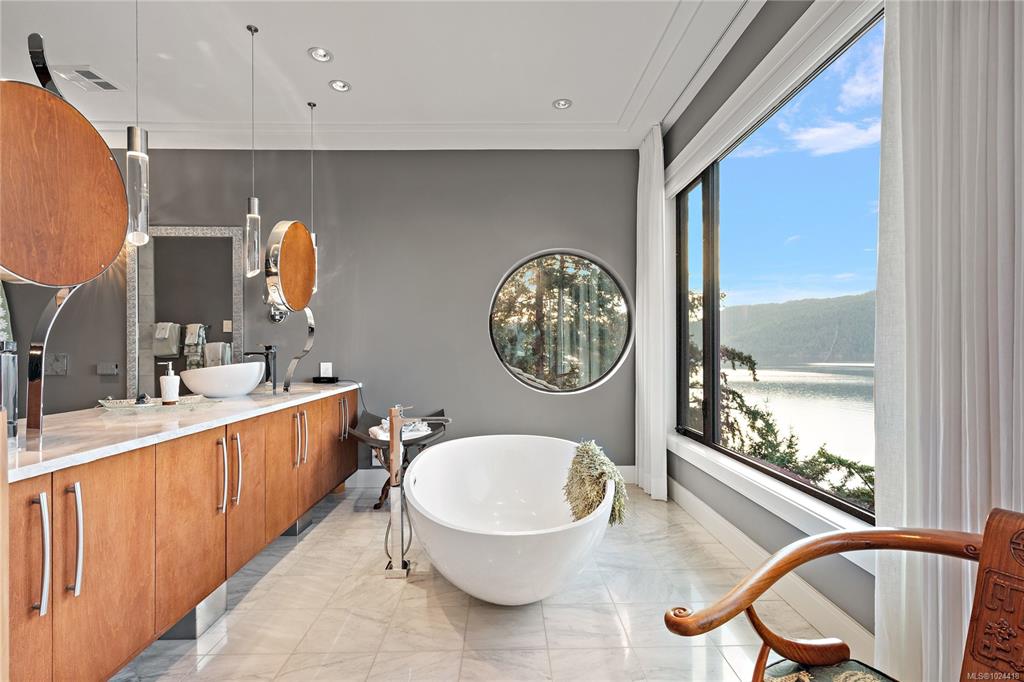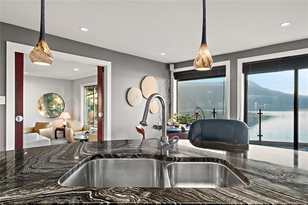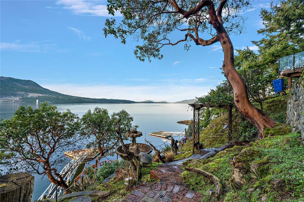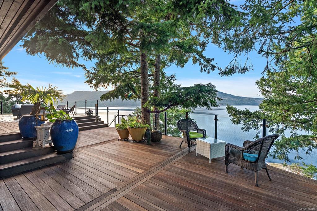 Discover this exceptional 3 Bed/4 Bath, 7,091 sq ft custom waterfront estate on nearly 1ac. with reg. foreshore w/ deep water dock & slipway launch in Willis Point. Enjoy panoramic 180degree Saanich Inlet views w/ west-facing exposure & all-day natural light. A grand 2-storey entry w/ dramatic staircase & water feature sets the tone. Vaulted ceilings, floor-to-ceiling windows, & open-concept living offer seamless indoor/outdoor flow. Designer finishes include custom stone & millwork, crown molding, & luxury...