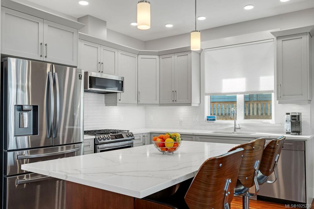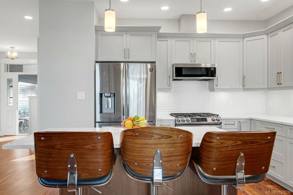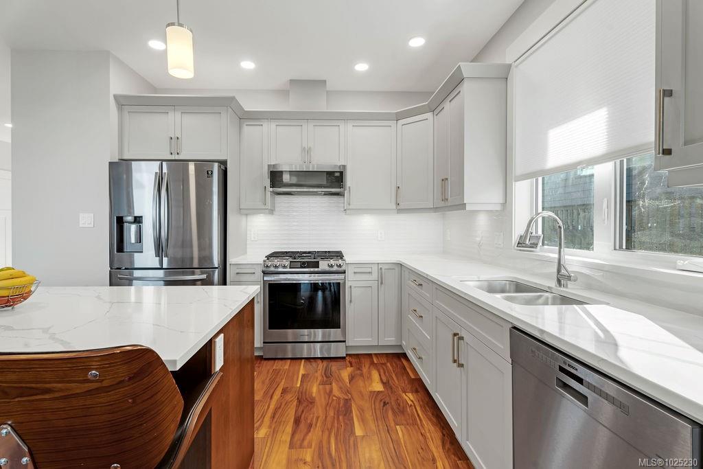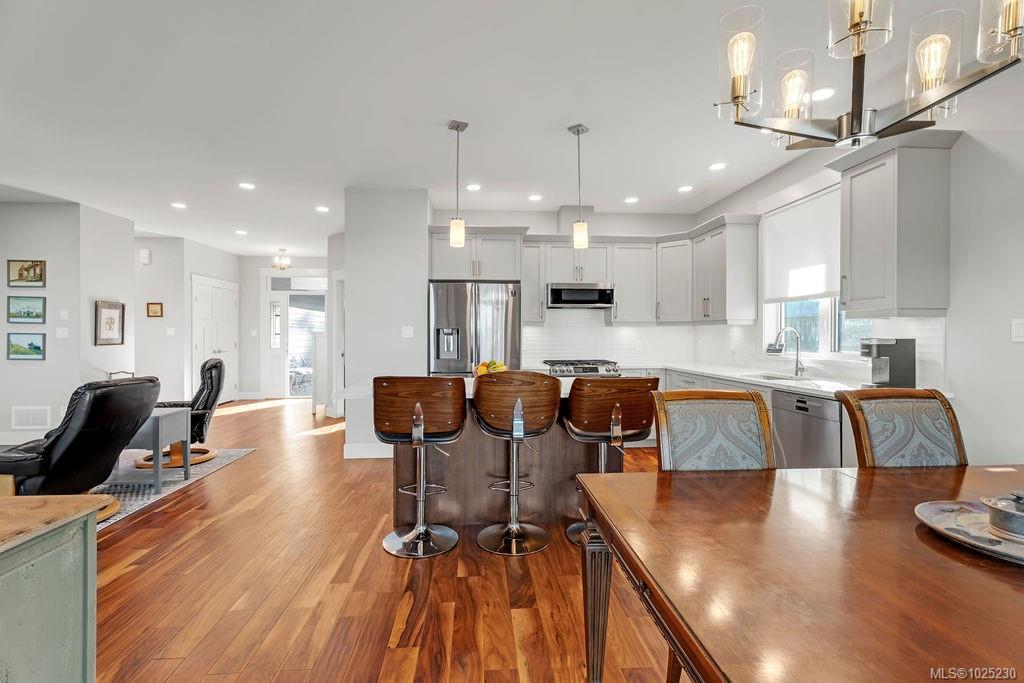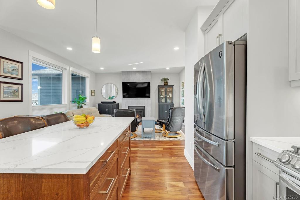A practically new rancher. This quality built 3 bed home heated with high efficiency gas furnace & heat pump was completed in 2021. The modern kitchen provides painted wood cabinets, quartz countertops, stainless steel appliances, and tile backsplash. The space flows into the dining area, with sliding glass door out to a private, fenced backyard and partially covered patio—perfect for entertaining or relaxing outdoors. An expansive open plan layout with 9'-0" ceilings, big windows, gas fireplace, hard wood ...