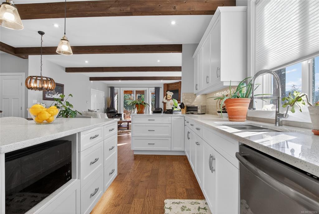 Welcome to 7284 Lakefront Drive — a turn-key 3 bed, 2 bath rancher in the peaceful Woodland Shores community of Lake Cowichan. Just 8 years old on a sunny, fully fenced corner lot of nearly half an acre. The south-facing backyard is a private sanctuary — professionally landscaped with mature gardens, full irrigation, and a serene pond with waterfall & river feature. Step onto the 400 sq ft screened cedar porch and soak in lake & mountain views year-round. Inside, wood flooring flows through an open-concept ...