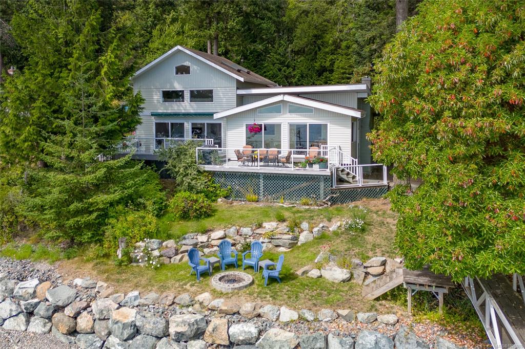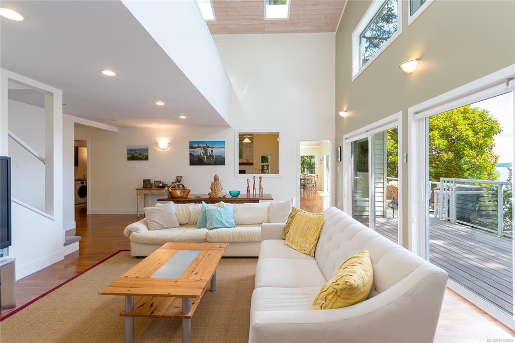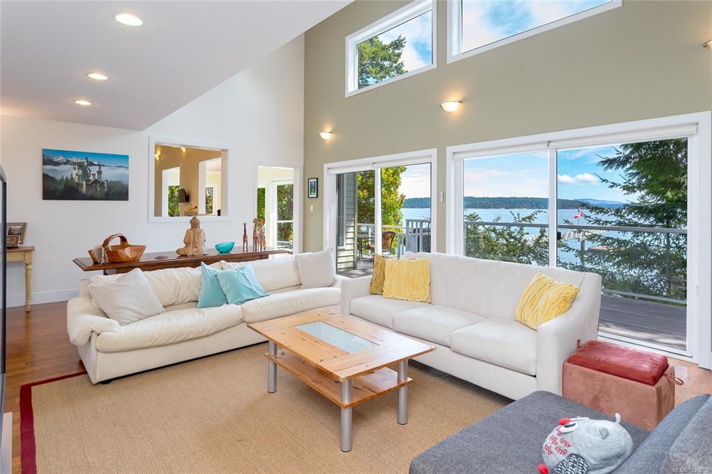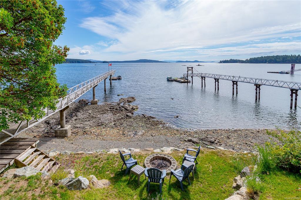 Nestled on a sunny, half-acre parcel of low-bank oceanfront, this 2-bed + den, 2-bath home is just a 5-minute boat ride from Sidney. With nearly 2,400 sqft of living space, vaulted ceilings & large windows showcase stunning views of Mt Baker and active marine life, seals, eagles & orcas. The main floor features an open-concept kitchen, dining, and great room with a cozy propane fireplace, perfect for storm-watching or gathering with friends. The primary bedroom & ensuite is on the main level. A home office ...