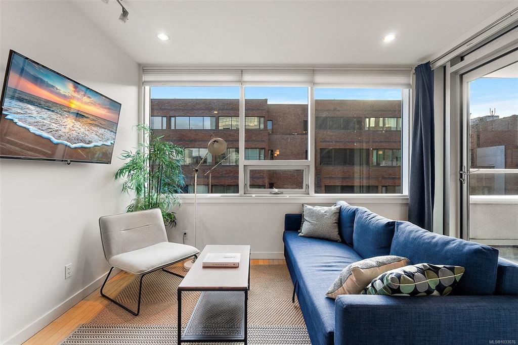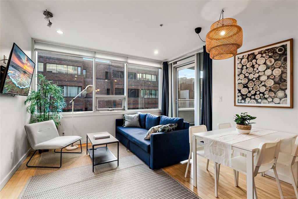 Welcome to SoMA, a sleek steel-and-concrete building offering boutique downtown living in the heart of Victoria. This bright, south-facing fourth-floor suite features two bedrooms, two bathrooms, and over 500 sq ft of private outdoor space across two generous balconies—perfect for enjoying sunny exposure and vibrant urban views. Part of a limited collection of thoughtfully designed homes, the interior flows seamlessly onto the outdoor areas, creating a natural connection between indoor and outdoor living. T...