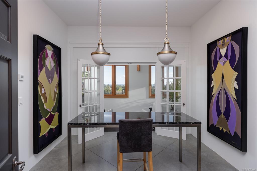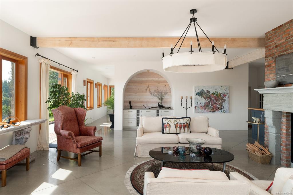 Nestled on 2.4 acres of gently rolling hillside, this exceptional Metchosin estate features a 4,000+ sq.ft. Rancher & 1,380 sq.ft. detached building with an art studio, bathroom, workshop & garage. The exterior reflects French provincial elegance, with a granite façade, wrought iron detailing & a concrete water feature signaling the craftsmanship inside. Inside, polished concrete floors, exposed beams, reclaimed brick accents, and inlaid wood detailing create an inviting, artistic atmosphere rarely seen in ...