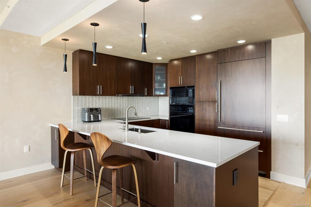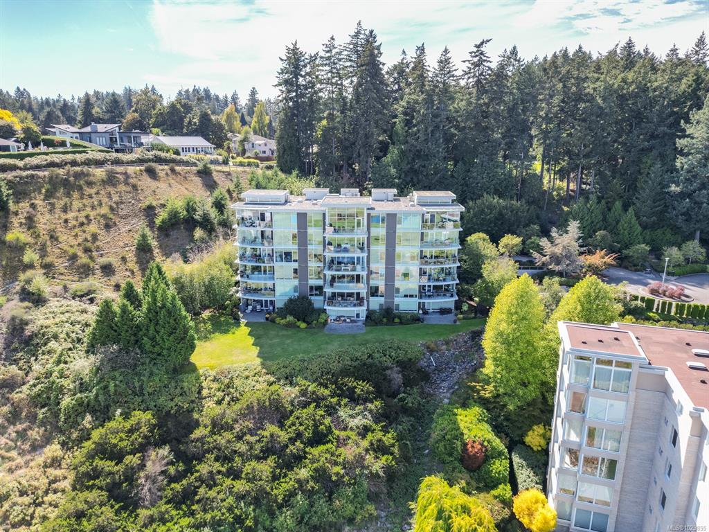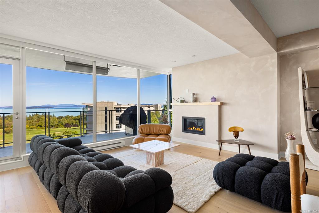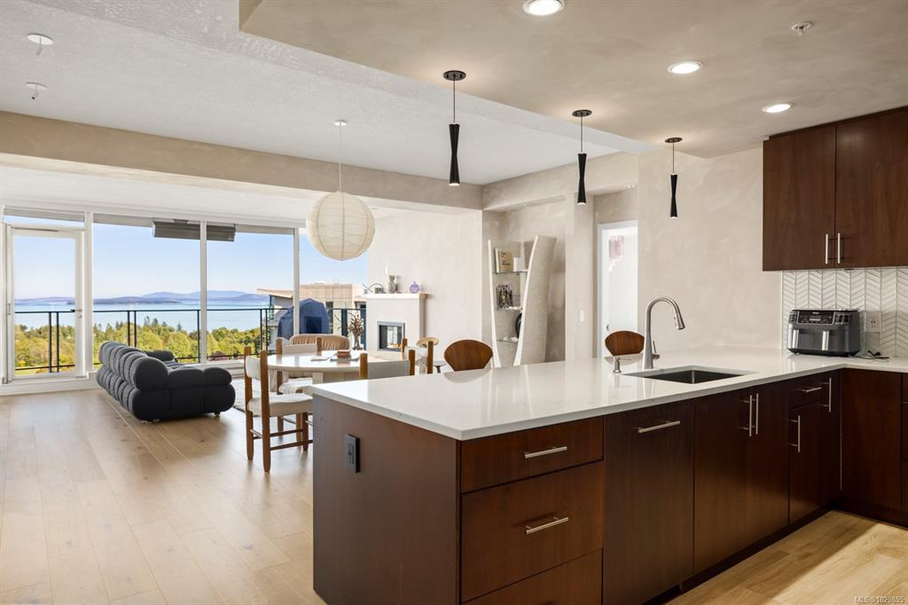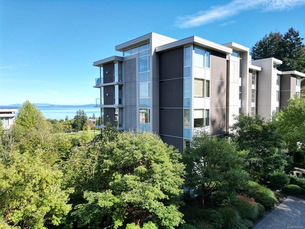 Welcome to "Ridge View", set against a backdrop of stunning natural beauty. Nestled in the prestigious seaside community of Cordova Bay, this 2-bedroom plus den residence, crafted by the esteemed Jawl Development, offers panoramic views of the Salish Sea, Gulf Islands, and distant mountains from every expansive window. A refined, timeless design features white oak flooring, a gourmet kitchen with top-of-the-line Wolf and Subzero appliances, quartz countertops, a spacious laundry room, and ample storage. The...