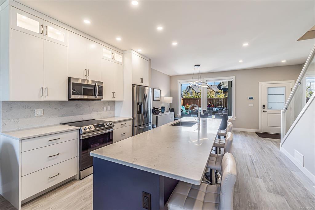 Beautiful 'Wembley Crossing' Executive Home! Quality-built 4 Bed/3 Bath Custom Contemporary Home on a beautifully landscaped .09 acre featuring all day-to-day living areas on the main level, modern fixtures and finishes, and private, fenced outdoor living space. The open-concept Kitchen, Living, and Dining area has luxury vinyl plank flooring and a 9-foot ceiling with LED lighting. The Living Room features a linear electric fireplace. The Designer Island Kitchen offers stainless appliances, quartz counterto...