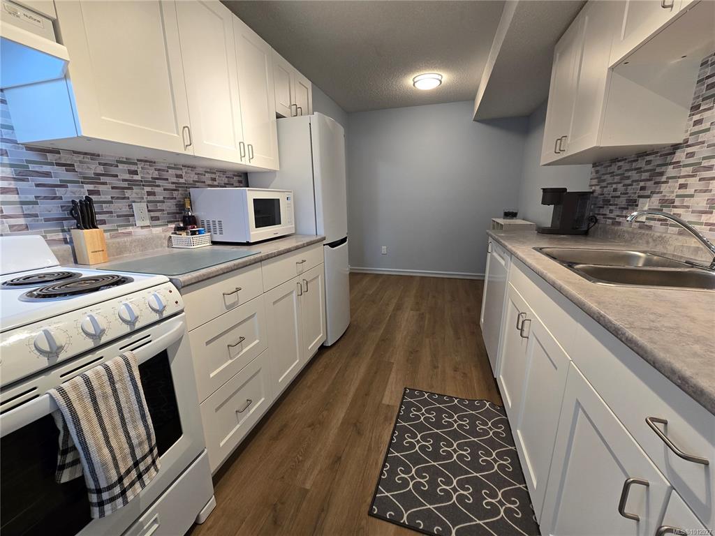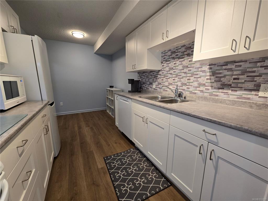 Beautifully updated 2 bedroom, 1 bathroom condo, just steps from the Ocean! Welcome to 101 Harbourview, a bright and spacious ground floor unit in a desirable, secured entry building close to all of Port Hardy's amenities. Just move right in, everything has been renovated within the past few years- Kitchen cabinets, counter tops, sink and facet, dishwasher, Bathroom vanity and sink, toilet, flooring and lighting in kitchen and bathroom. All heating registers have been replaced and independent shut-off valve...
