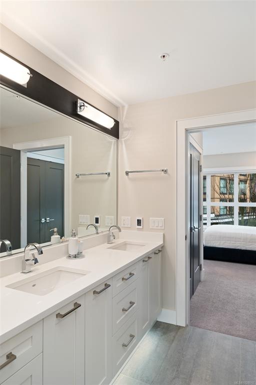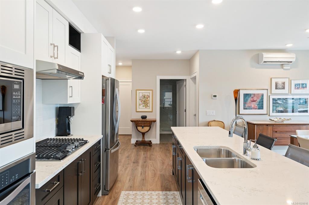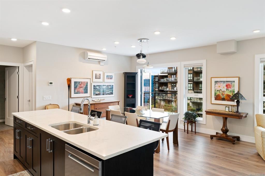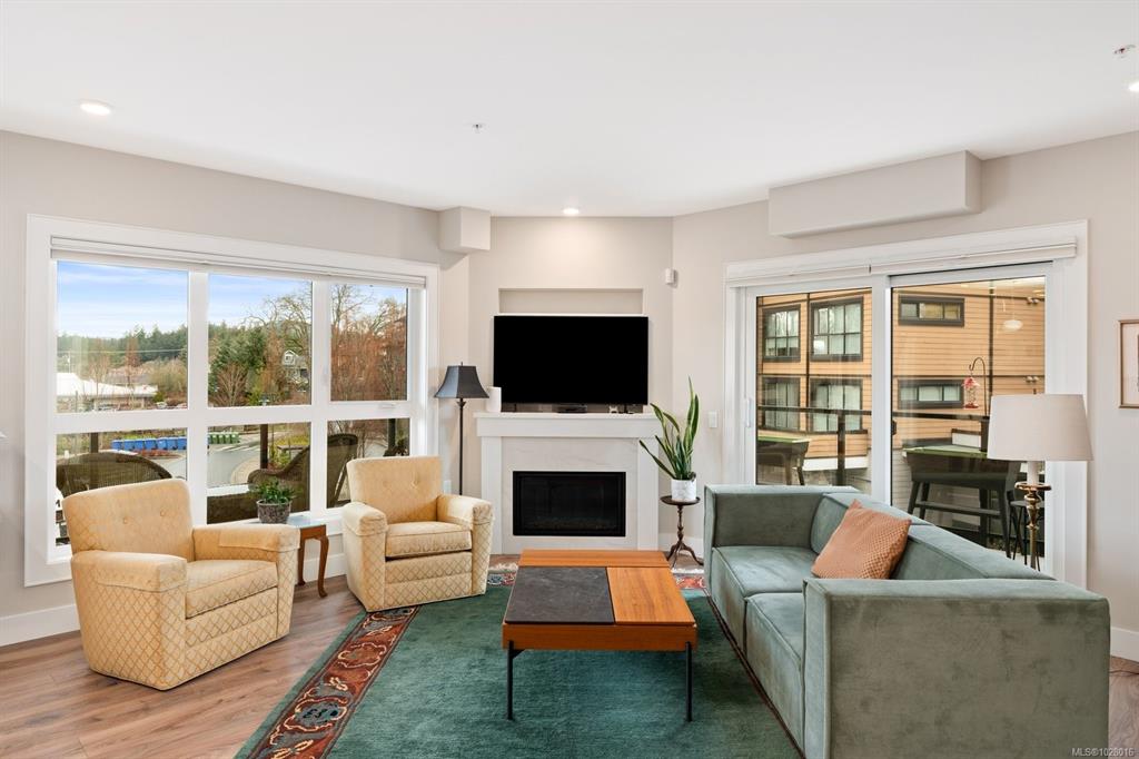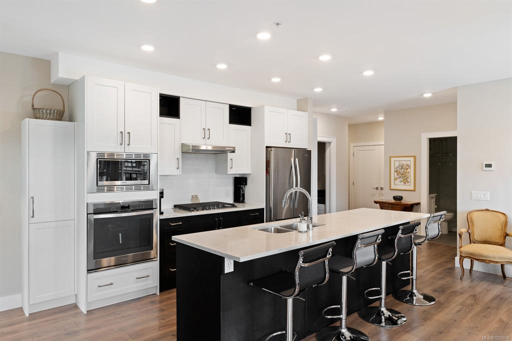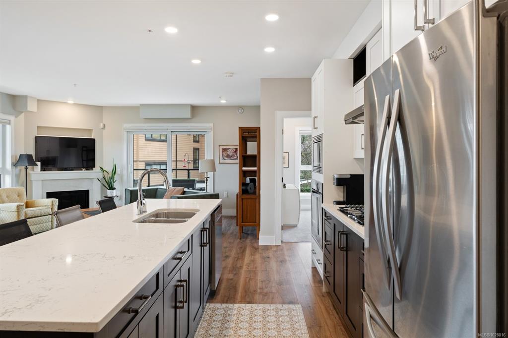 Like-new corner residence at Travino offering 1,335 sq.ft. of bright, refined living w/ 2 beds, 2 baths + den. One of the most desirable layouts w/ well-separated bedrooms & a spacious open-concept living & dining area. Step onto the impressive 312 sq.ft. wraparound deck w/ westerly exposure overlooking beautifully landscaped grounds. The chef-inspired kitchen features quartz counters, a large island, gas range, built-in wall oven, & ample cabinetry. Modern finishes, & a cozy gas fireplace create a warm, el...