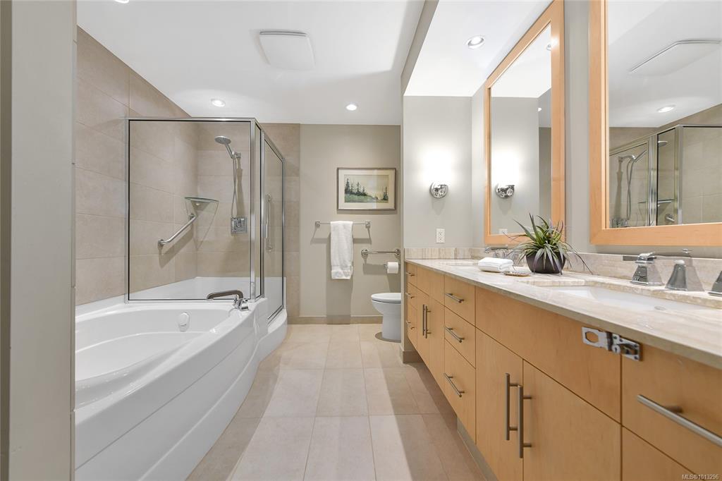 SAYWARD HILL LIFESTYLE, overlooking world-class golf at Cordova Bay, sandy beaches, walking/biking trails, Mattick's Farm shops all nearby. This premiere, 2008 JAWL DEV. concrete/steel building is sought-after with its spectacular views, amazing layout, quality finishing and perfect positioning. An elegant home, meticulously maintained offering 2BD, 2BA, Media Room plus Home Office in 1,856sf, with designer inspired updates inc: paint, wool carpeting, lighting, motorized blinds, appliances, HWT and move-in ...