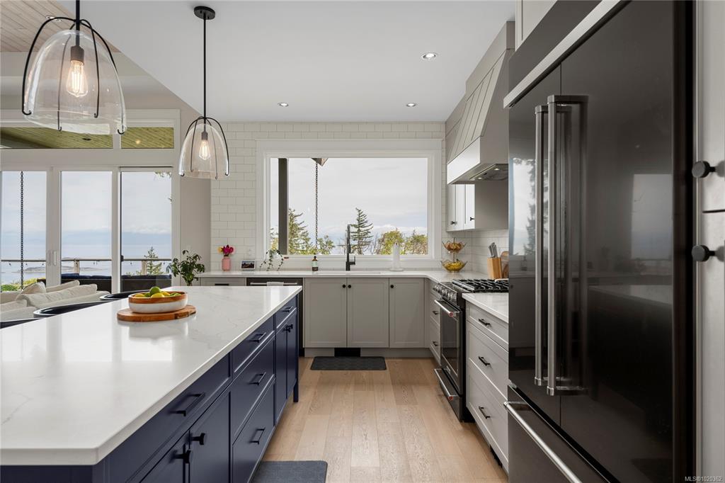 Custom Lantzville Foothills home featuring serene ocean, mountain & city views. This modern craftsman 5 BD, 4 BA beauty brings the wow factor with a floor to ceiling rock fireplace & oversized windows that add natural light & showcase the ocean, mountain & city views. You'll love the open dining & kitchen w/ large quartz island & eating bar, plus a convenient butler's pantry w/ extra appliances. The Primary BD is spacious & includes a 5-PC ensuite, WC, large walk-in closet & walk-out patio. Outside, enjoy p...