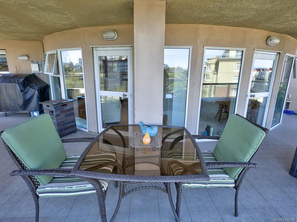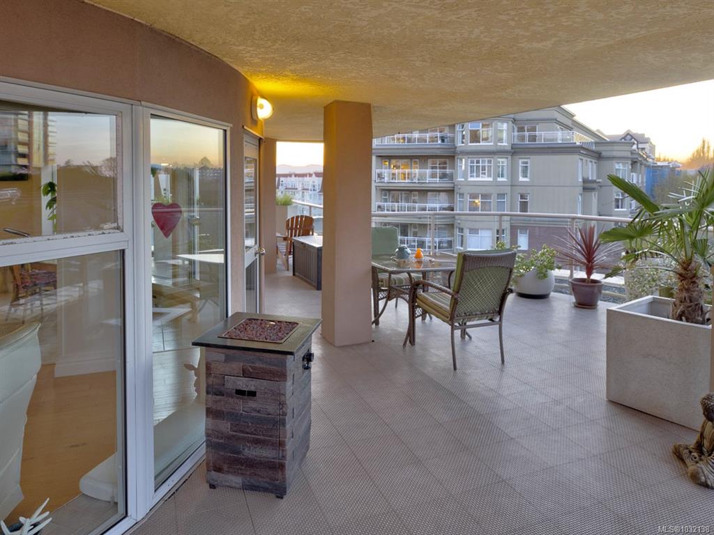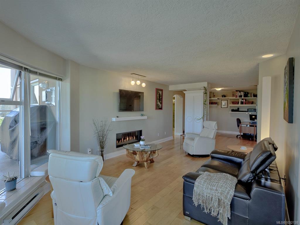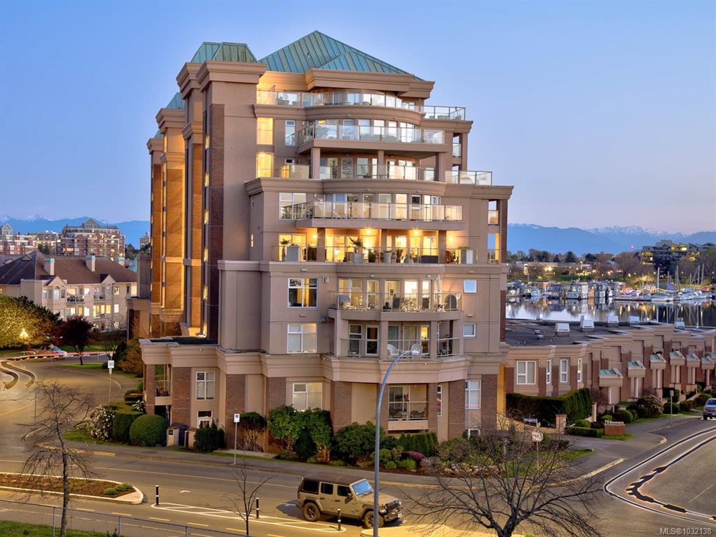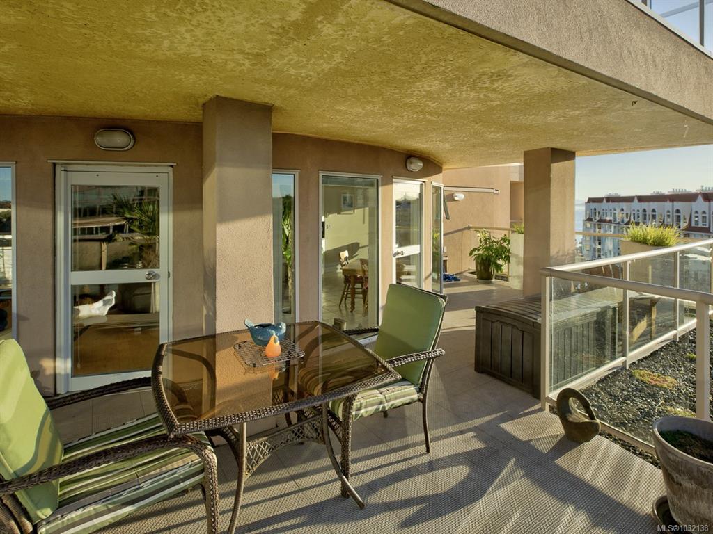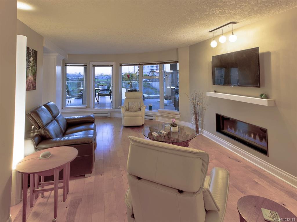 Rare executive bright END UNIT at Mariner's Landing - one of Victoria's Premier Condominium Residences with a large 520 sq.ft.partially covered deck on the lee side of the building & a 2nd 90 sq.ft. deck facing west, perfect for the gardening or outdoor enthusiast, bbq's permitted too! Versatile open floorplan, wood floors throughout, spacious primary bedroom, well appointed ensuite, walk-in closet,electric fireplace, guest bedroom with built-in Murphy Bed, beautifully updated kitchen with either a family r...