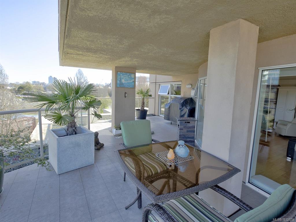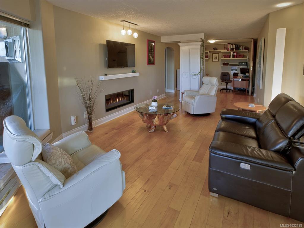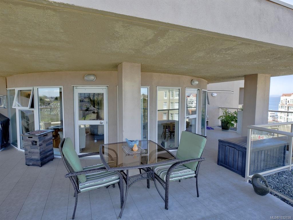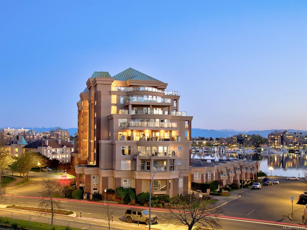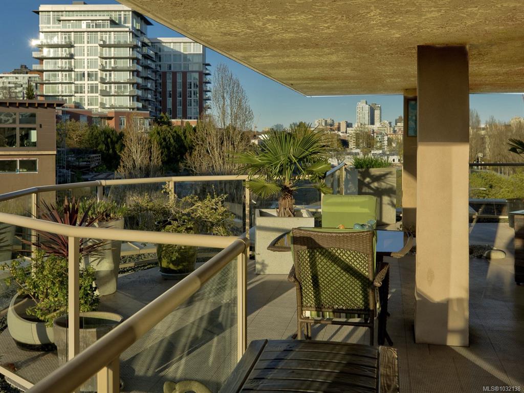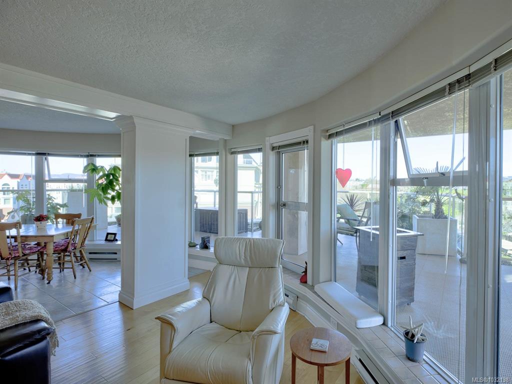 Rare executive bright END UNIT at Mariner's Landing - one of Victoria's Premier Condominium Residences with a large 520 sq.ft.partially covered deck on the lee side of the building & a 2nd 90 sq.ft. deck facing west, perfect for the gardening or outdoor enthusiast, bbq's permitted too! Versatile open floorplan, wood floors throughout, spacious primary bedroom, well appointed ensuite, walk-in closet,electric fireplace, guest bedroom with built-in Murphy Bed, beautifully updated kitchen with either a family r...