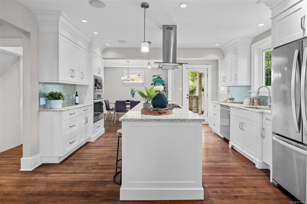 A timeless South Oak Bay residence offering character, space, and privacy on an 11,424 sq ft west-facing lot. Built in 1936 and reimagined in 2015 by Mike Knight Construction, this 5 bed, 4 bath home is filled with light from windows on all sides. Arched doorways, French doors, and wood floors pair beautifully with thoughtful updates throughout. The open kitchen flows to a sunny west-facing deck overlooking lush, irrigated gardens. A full bath and main floor bedroom offer flexibility and accessibility. Upst...