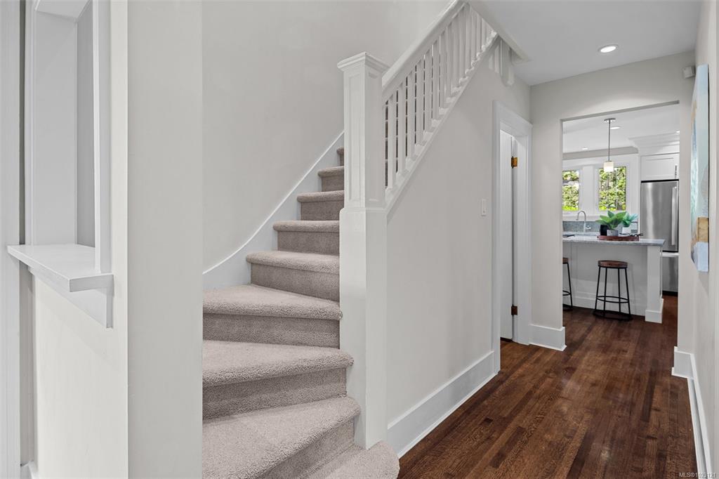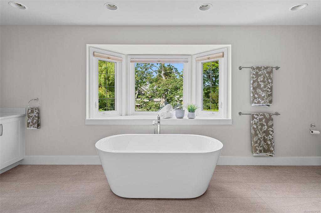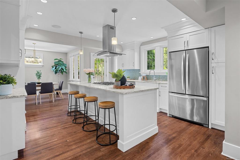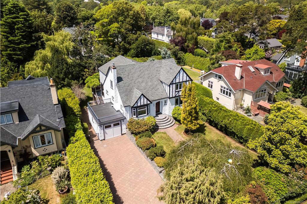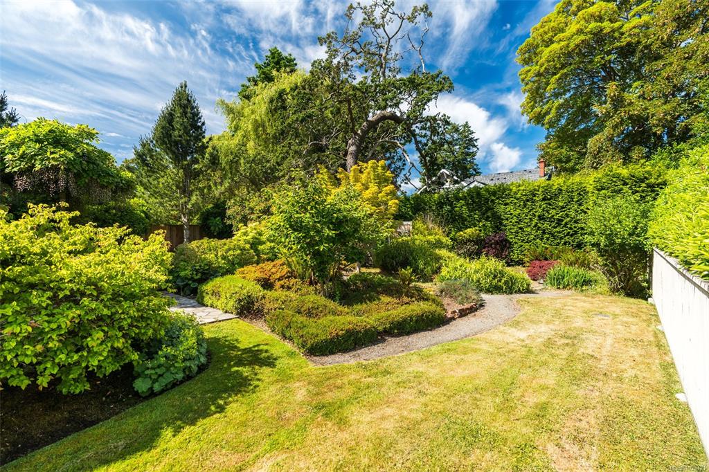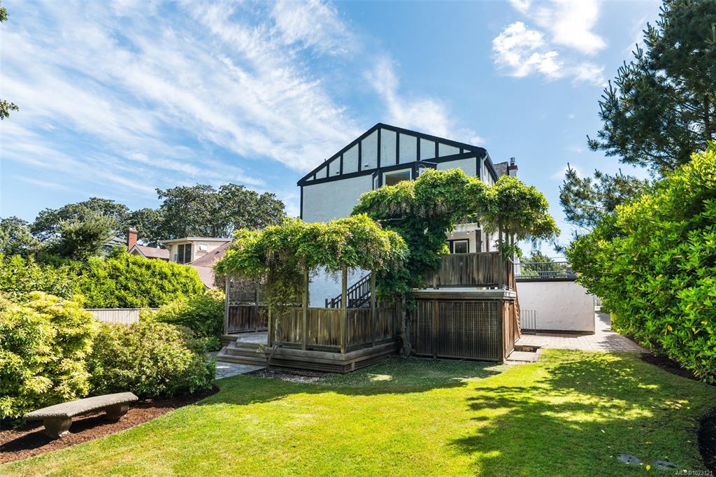 Beautifully renovated 1930s character home, situated on a private, fully manicured, sprawling west-facing lot in South Oak Bay. This timeless residence offers period details that evoke an era of genuine craftsmanship. Features include wood floors, coved ceilings, French doors, a gas fireplace and updated windows that let in light from every angle. The open-concept kitchen is the perfect setting for dinner parties & family gatherings, and flows seamlessly to the sunny back deck with a wisteria-wrapped arbour...