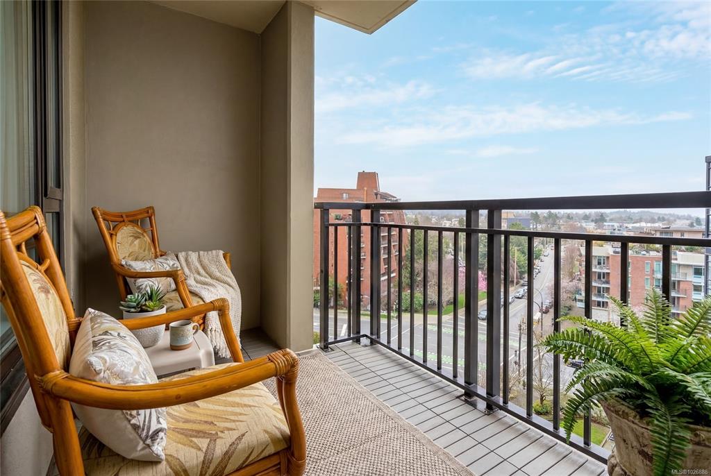 Welcome to the award-winning Astoria. A steel & concrete building in the most desirable neighbourhood in downtown Victoria. Perfect tenth floor suite on the quiet side of the building with serene ocean & mountain vistas. Features large kitchen w/ tons of counter space, stainless steel appliances, and in suite laundry. Huge bright south facing windows bath your home in natural light. Upgrades in the last five years include new flooring, bathroom commode, microwave, kitchen taps & more. Amenities: spacious lo...
