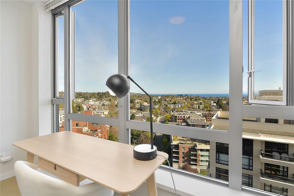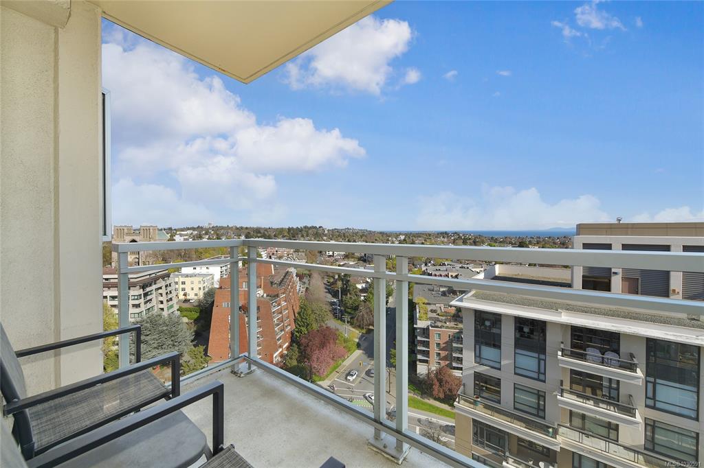 Open House Sat April 11/1-3pm. Soaring above Victoria on the 19th floor, this stunning sub-penthouse at the award-winning Astoria delivers breathtaking city, mountain, and ocean views from every angle. This bright 1 bed + den showcases a wall of windows that floods the open-concept living and dining space with natural light. The den offers a flexible space, perfect as a home office, reading room, or yoga retreat. 4-piece bath and in-suite laundry complete the layout. The Astoria is a steel-and-concrete buil...
