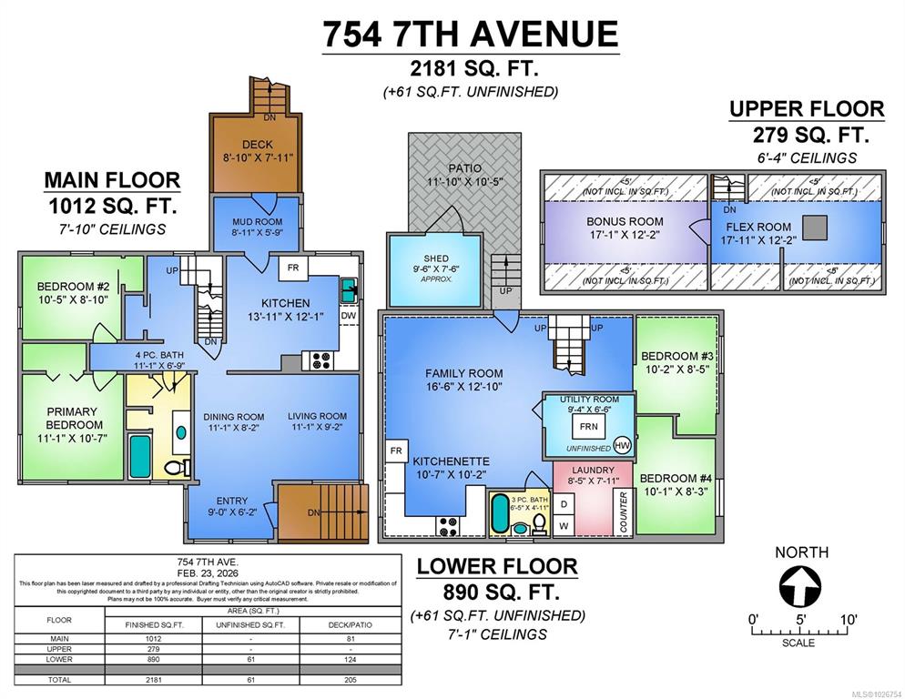 Welcome to 754 7th Ave in beautiful Campbell River. This 4 Bedroom, 2 Bathroom home has space for everyone. The home is centrally located and close to bus routes, schools and all other shopping/conveniences. The main floor offers 2 bedrooms, main bathroom, spacious kitchen and living room all with ample natural light and a character feel. Upstairs are two large loft areas for office space or playrooms. Downstairs is a large family room, 2nd bathroom, laundry, and 2 bedrooms.The second kitchen on the lower ...