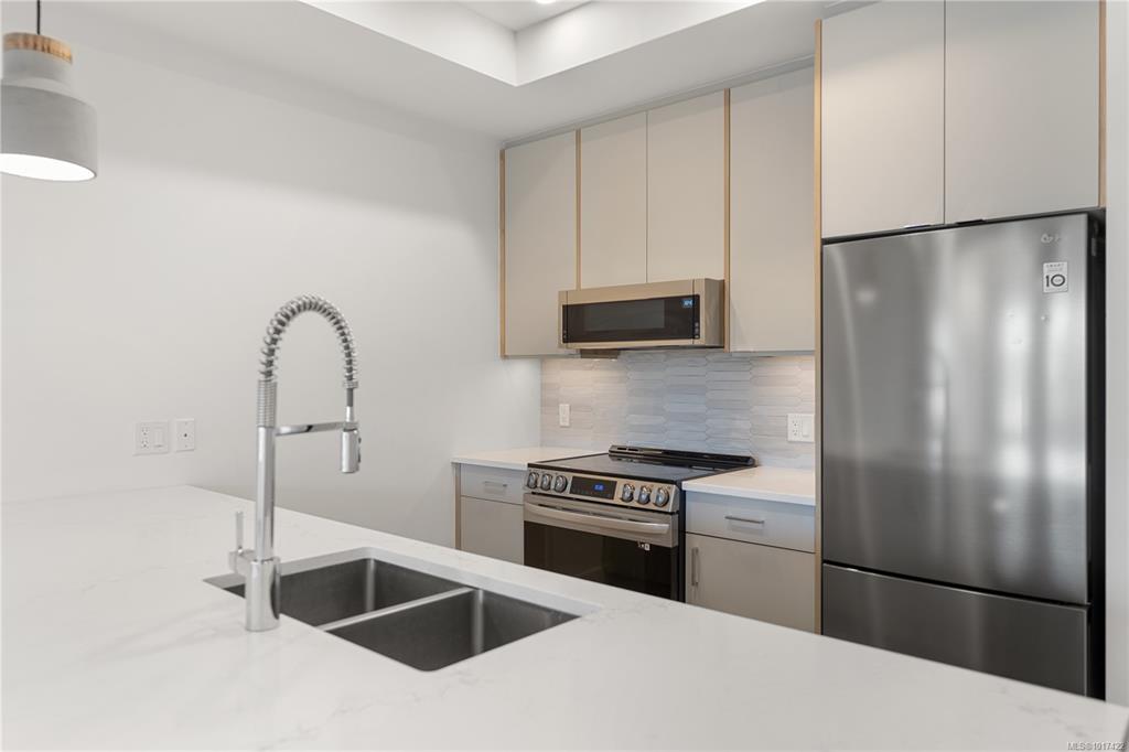 Welcome to waterfront living in this sun-filled home, located in the final phase of the Railyards community in Vic West. This two-bedroom, two-bathroom unit offers a spacious floor plan with luxury finishes. The open-concept layout features a thoughtful split-bedroom design, floor-to-ceiling windows, and a modern kitchen complete with stainless steel appliances, quartz countertops, and a sizeable patio. This home includes in-suite laundry, separate storage, bike storage, and secure underground parking. With...