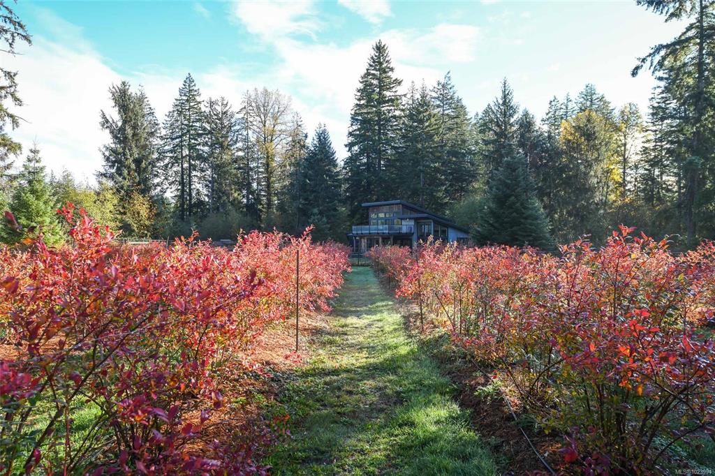 Discover serene west coast living on this nearly 5 acre sanctuary featuring a stunning, 2021 built, modern home with 3 bedrooms, 2 bathrooms, soaring ceilings, brilliant natural light, a dedicated office space, and a sunroom that frames gorgeous views of the property’s well established blueberry farm with approx. 300 thriving plants across four varietals that are fully irrigated. The main home features in floor heat in the bathrooms, Hunter Douglas custom blinds, and a vintage 1-ton hoist on display. A char...