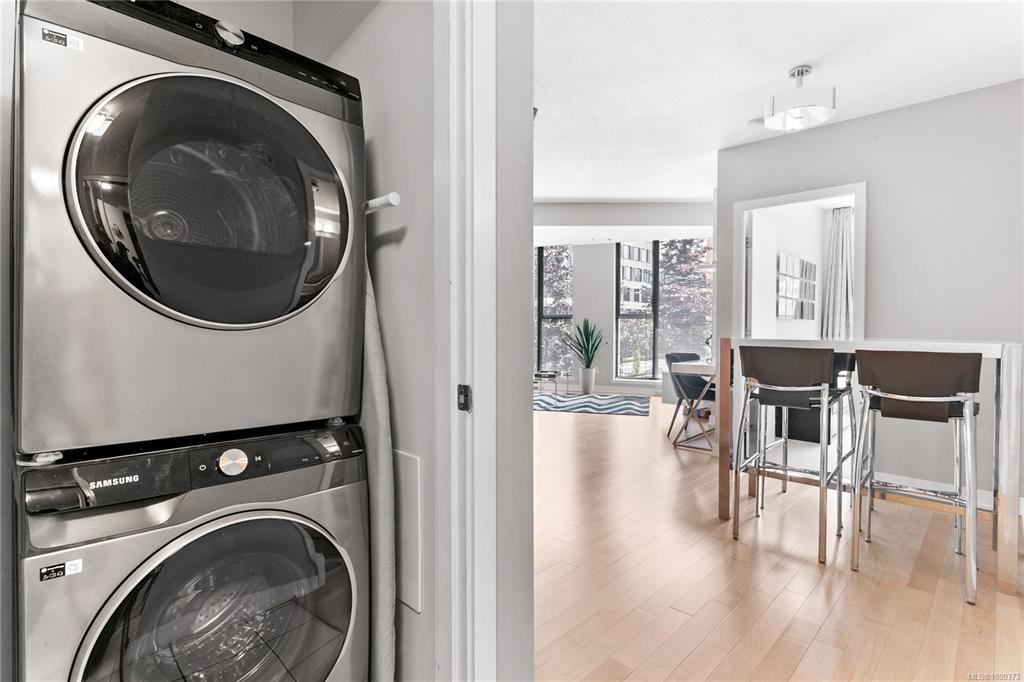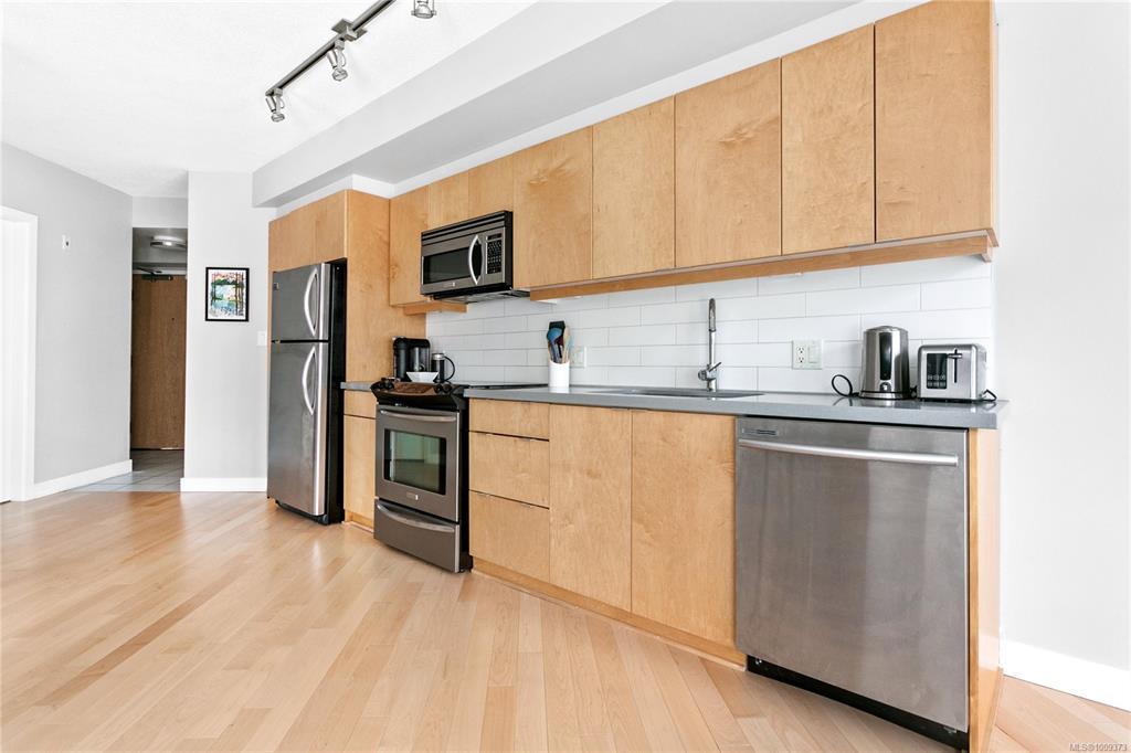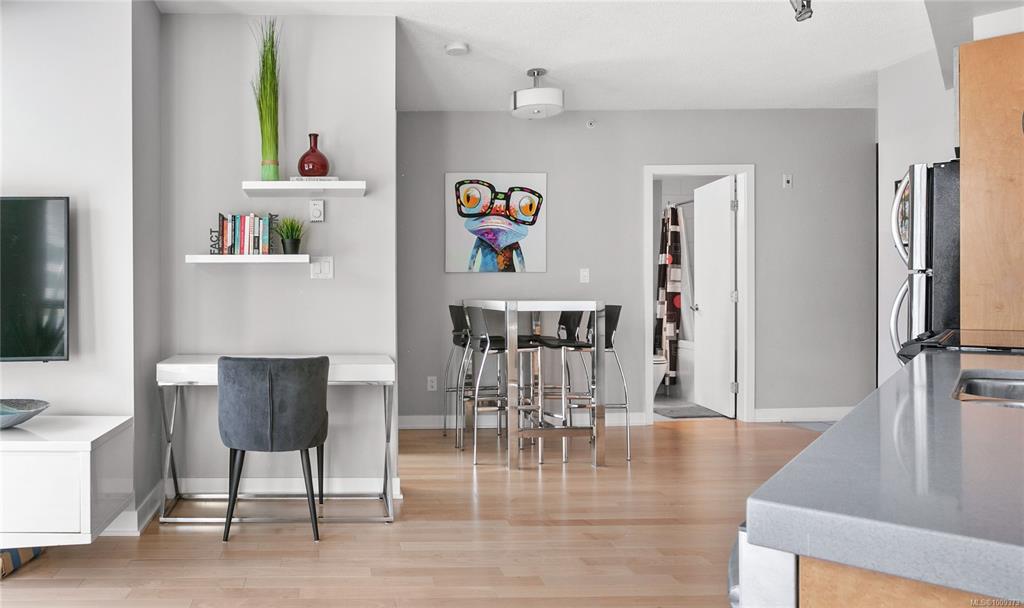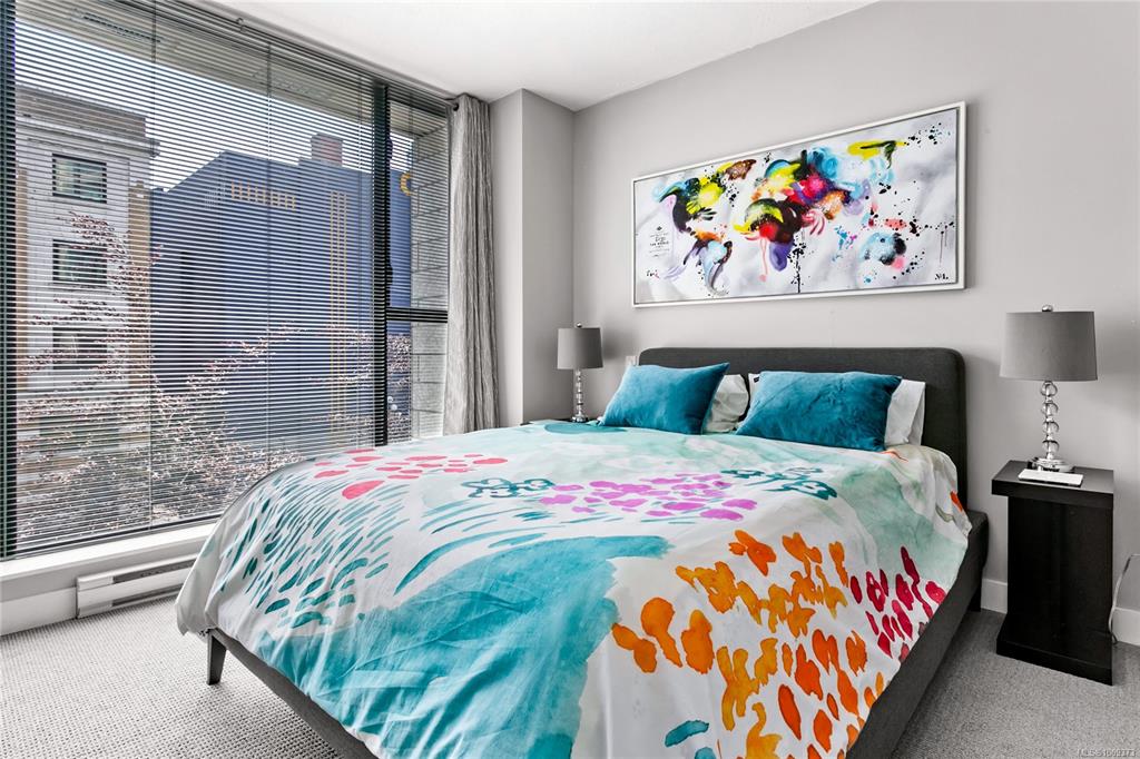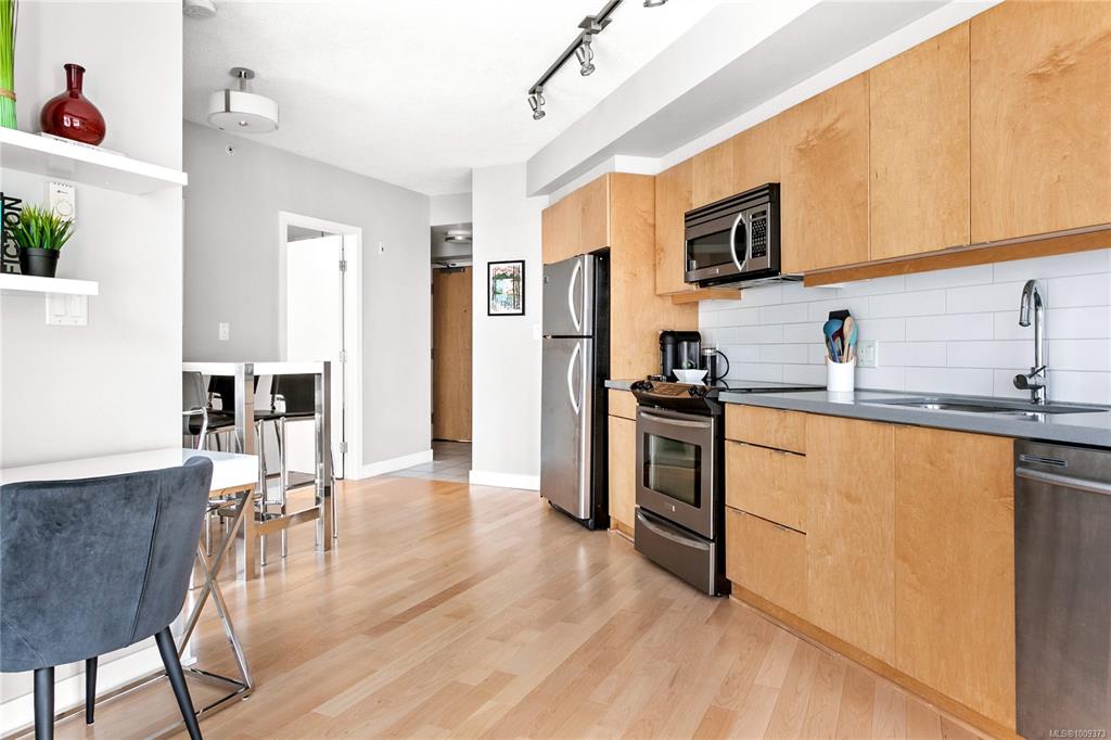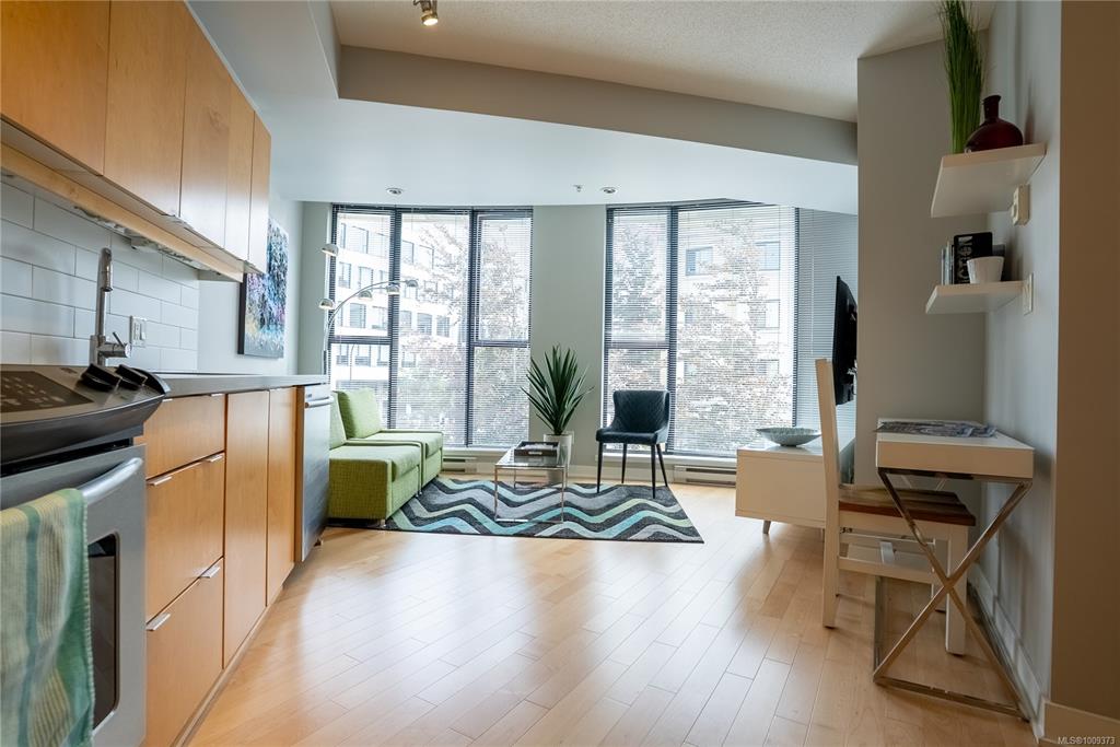 Welcome to this bright and functional 1 bedroom, 1 bathroom condo in the sought-after Juliet building at 760 Johnson Street. Offering 584 sq. ft. of thoughtfully designed living space, this south-facing home features an open-concept layout with a modern kitchen equipped with stainless steel appliances, wood-tone cabinetry, and a seamless flow into the dining and living areas with expansive windows. The spacious bedroom includes a large closet and direct access to a sleek 4-piece bathroom. This well-maintain...