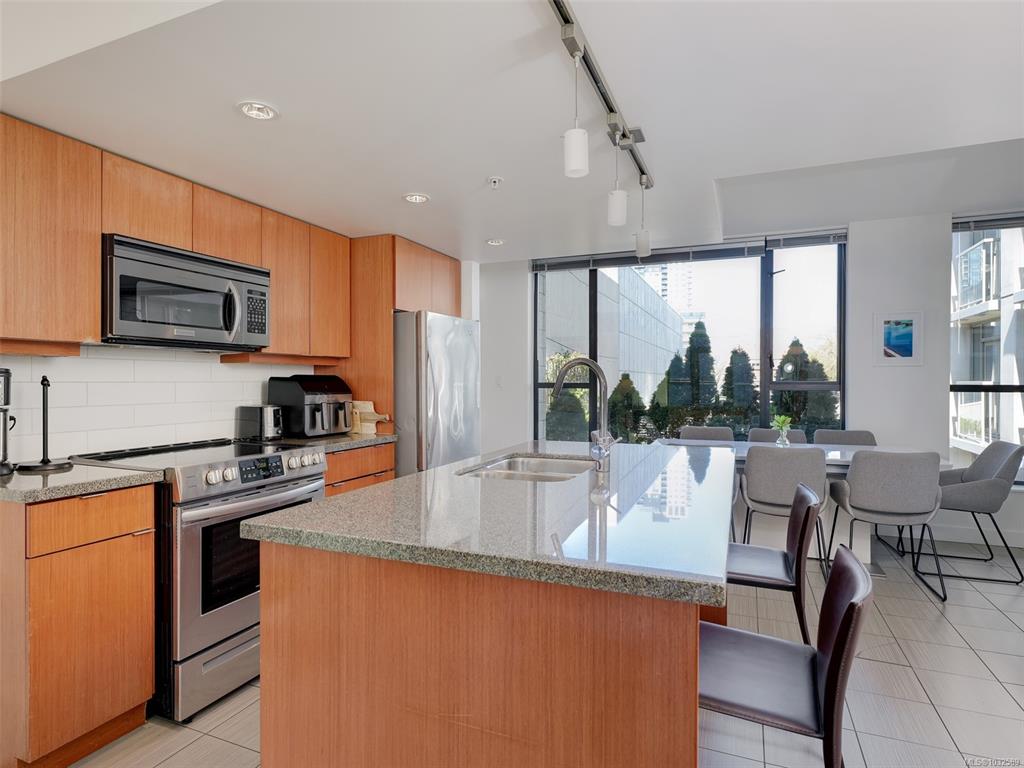 Centrally located in Downtown Victoria at the highly regarded Juliet / a Steel & Concrete Building by multi award winning Chard Properties. This spacious 2 Bed / 2 Bath corner condo features: big windows, an abundance of natural light, 99 walk score, S/U PARKING, Bike Parking, popular great room concept design with Island Kitchen, southern exposure, nice separation of bedrooms + amazing roof top Zen garden with outdoor BBQ kitchen high above the city and PETS Welcome 2 Dogs or 2 Cats. This Special Property ...