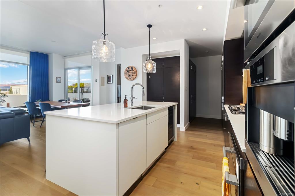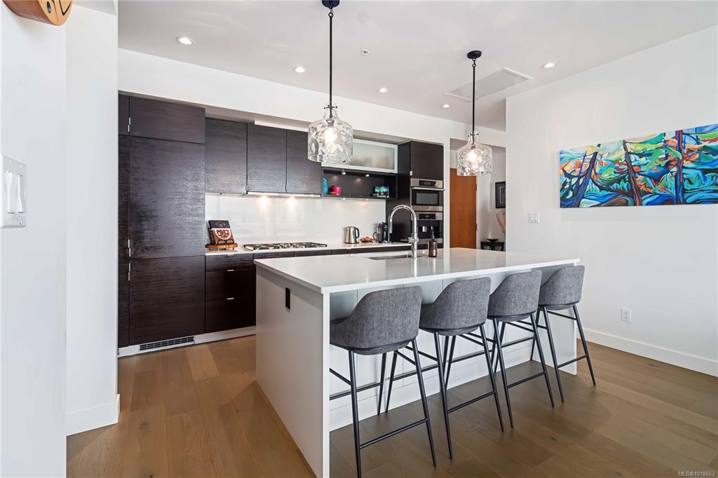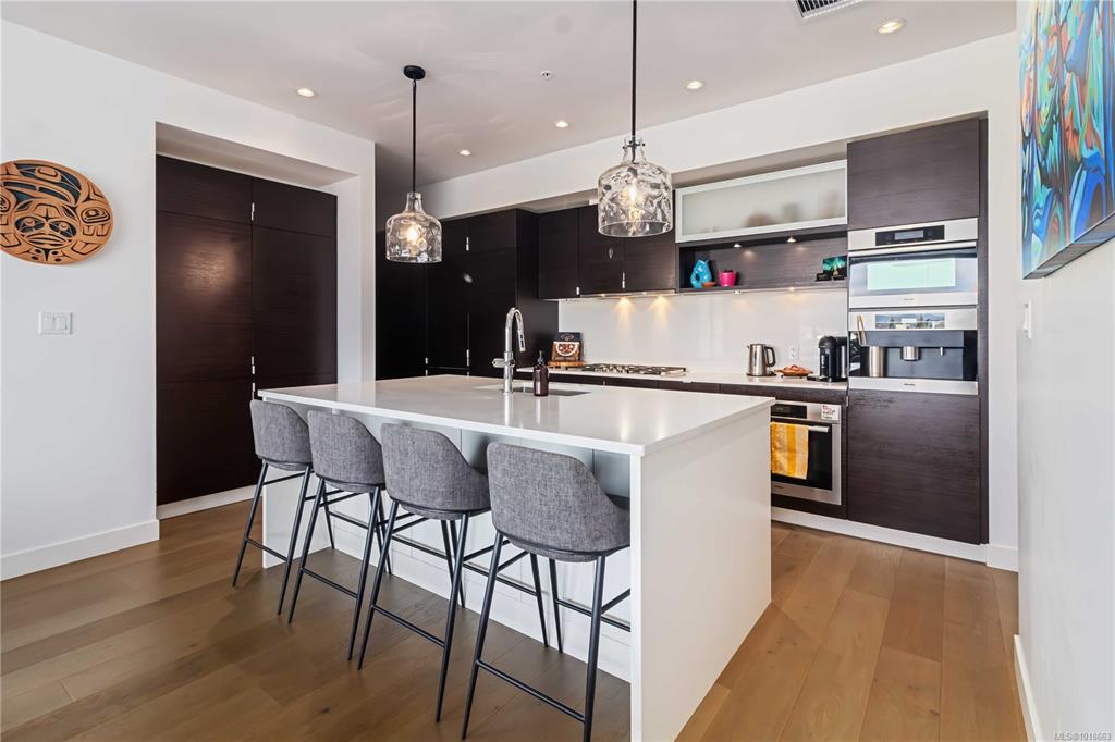 Experience luxury living in this stunning 2 bedroom + DEN Sub-Penthouse Suite at The Hudson. Located in Victoria’s historic downtown, this 1,312 sq. ft. home features 10-ft ceilings, in-suite laundry, heated bathroom floors, ample storage, and a geothermal HVAC system. Entertain in the open-concept kitchen, which boasts quartz countertops, a large island with a wine fridge, high-end Miele appliances including a 5-burner gas range, a double door fridge/freezer, a built-in Espresso Machine, a dual-purpose mic...