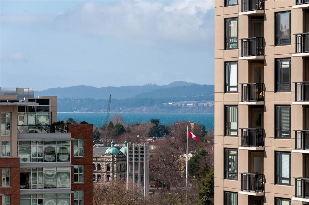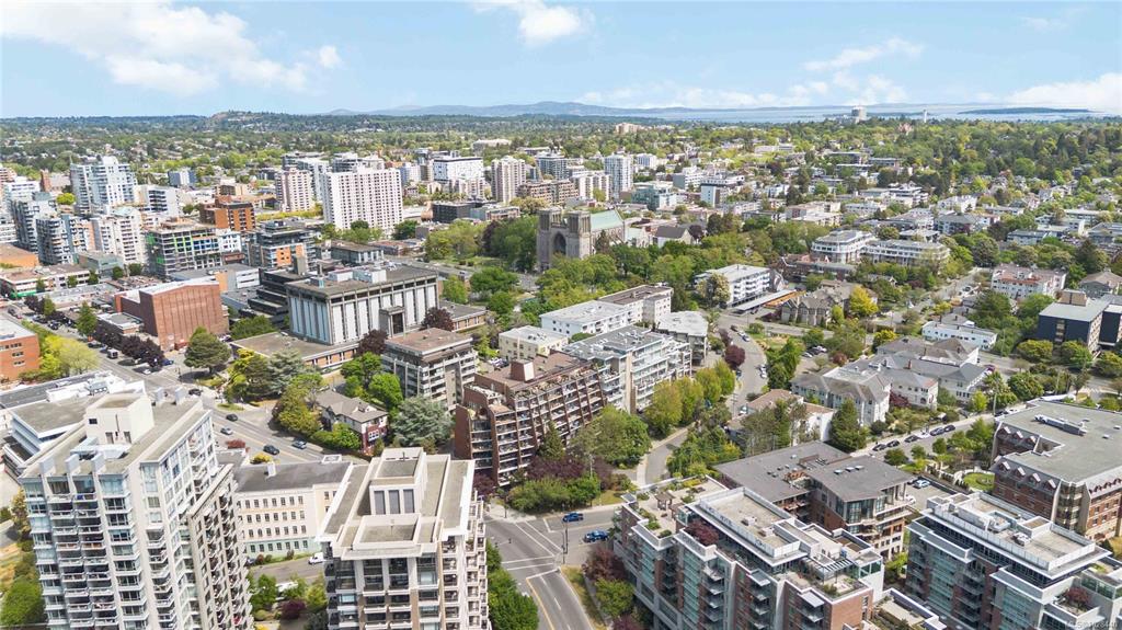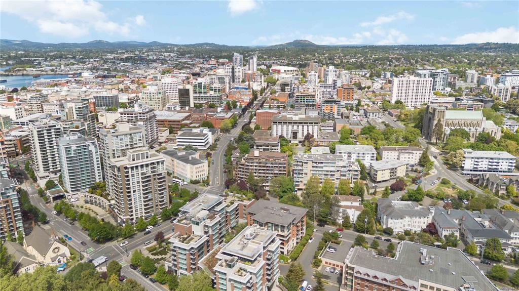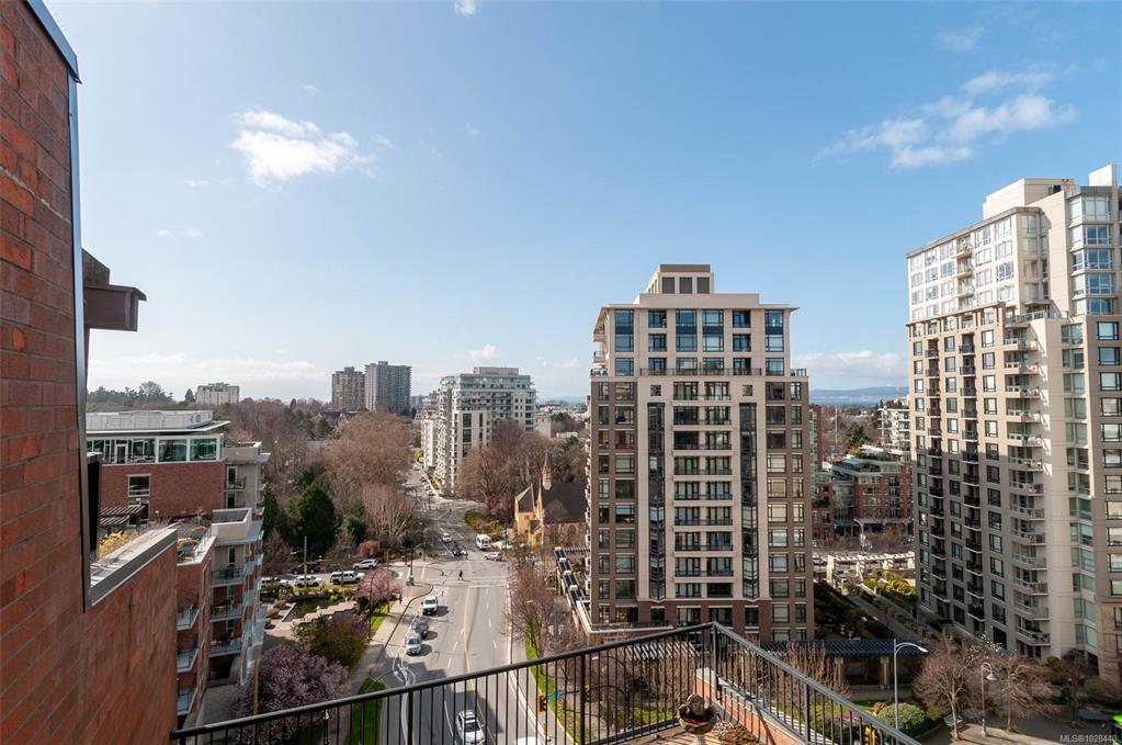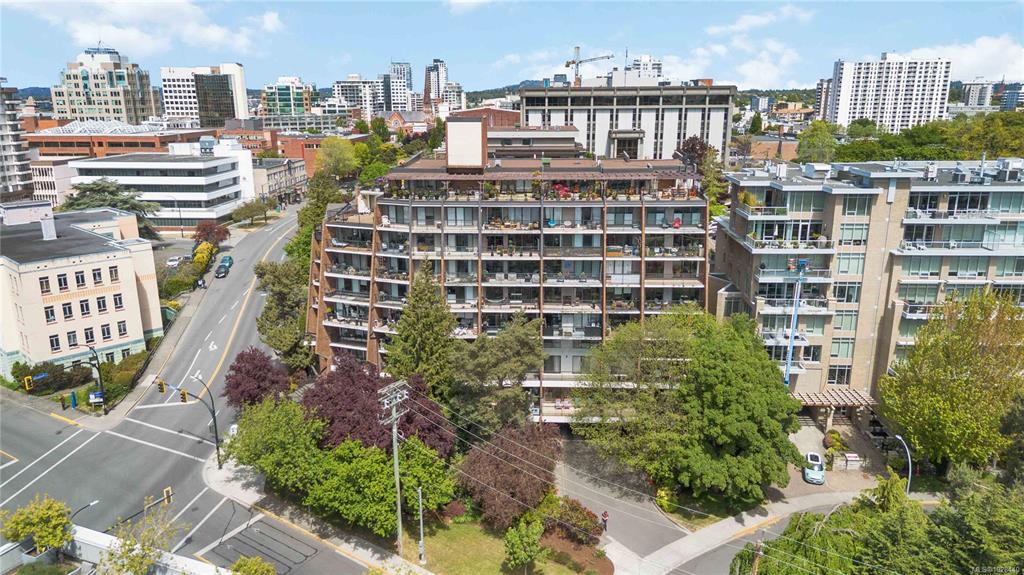 Perched atop the building, this premier penthouse offers spectacular views and an exceptional outdoor lifestyle in the heart of downtown Victoria. Enjoy an impressive 1,097 sq ft of outdoor space across three expansive balconies facing south, west, and north—perfect for soaking in sun, sunsets, and sweeping city outlooks. Offered for the first time since construction and held by the same family, this 1 bedroom, 1 bathroom residence features a bright layout ready for your ideas. Just steps to parks, shopping...