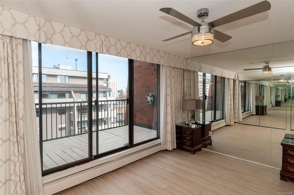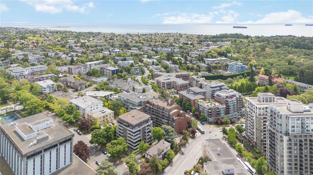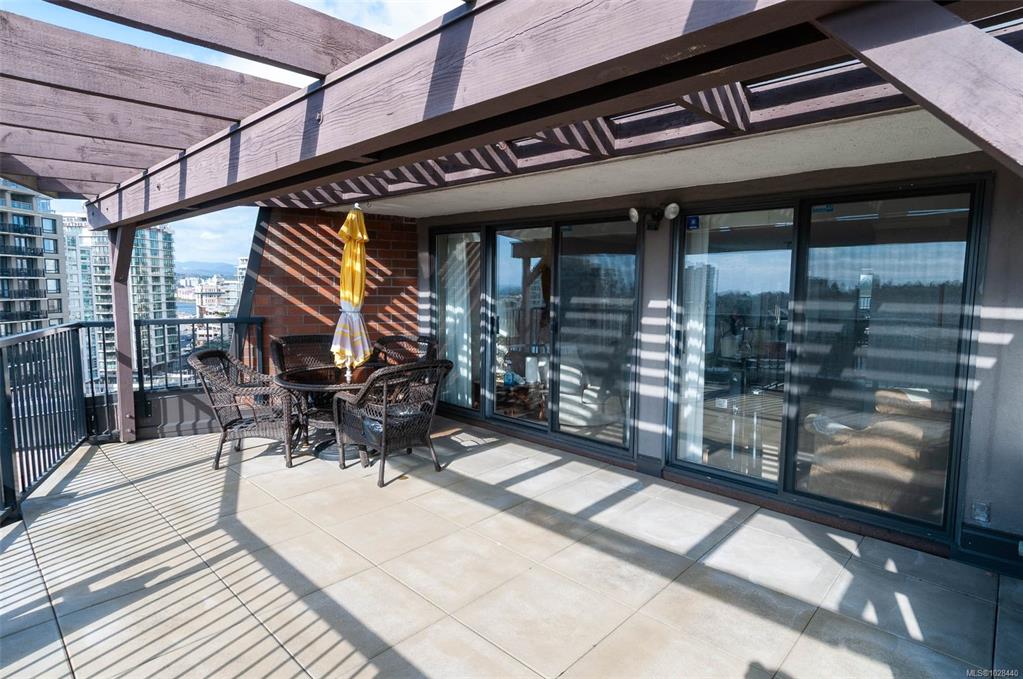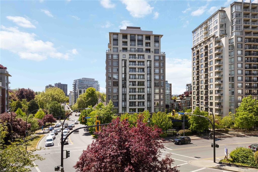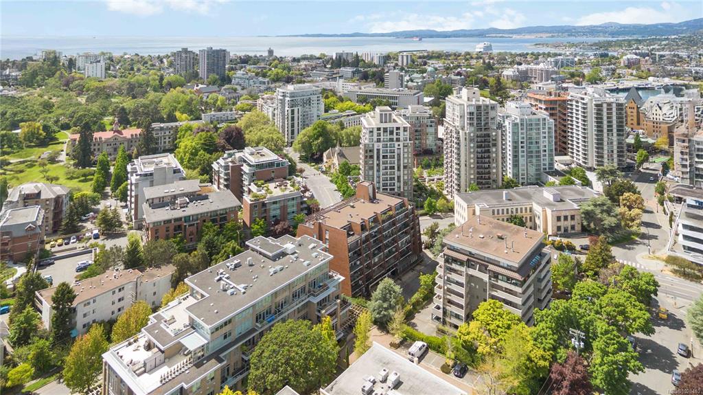 Perched atop the building, this premier penthouse offers spectacular views and an exceptional outdoor lifestyle in the heart of downtown Victoria. Enjoy an impressive 1,097 sq ft of outdoor space across three expansive balconies facing south, west, and north—perfect for soaking in sun, sunsets, and sweeping city outlooks. Offered for the first time since construction and held by the same family, this 1 bedroom, 1 bathroom residence features a bright layout ready for your ideas. Just steps to parks, shopping...