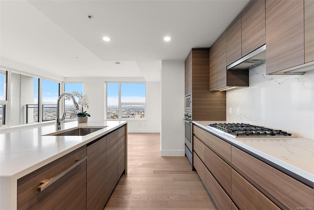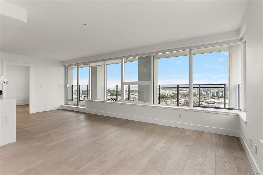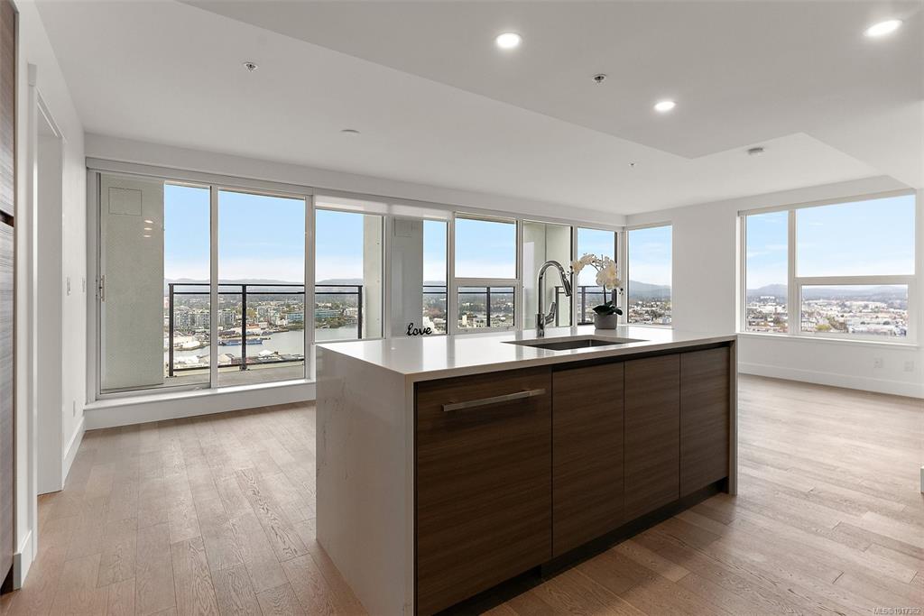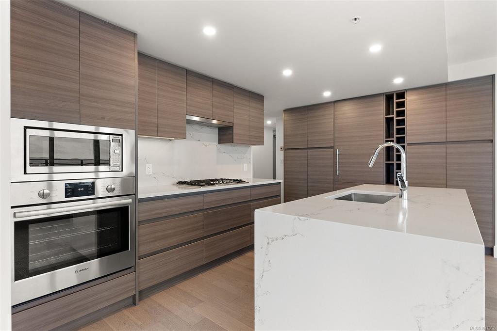 Open Sun, Oct 19th 11:30 AM - 1:00 PM. Better than new, this stunning Hudson Place One residence has never been lived in and GST is paid. Offering 2 bedrooms + den, 2 sumptuous bathrooms, and 2 side-by-side EV-ready parking stalls, this home defines modern luxury. Soaring floor-to-ceiling windows showcase sweeping west and north views of the city, harbour and Sooke Hills, while elevated finishes, premium Bosch appliances, and a sleek island anchor the chef-inspired kitchen. The thoughtful split-bedroom lay...