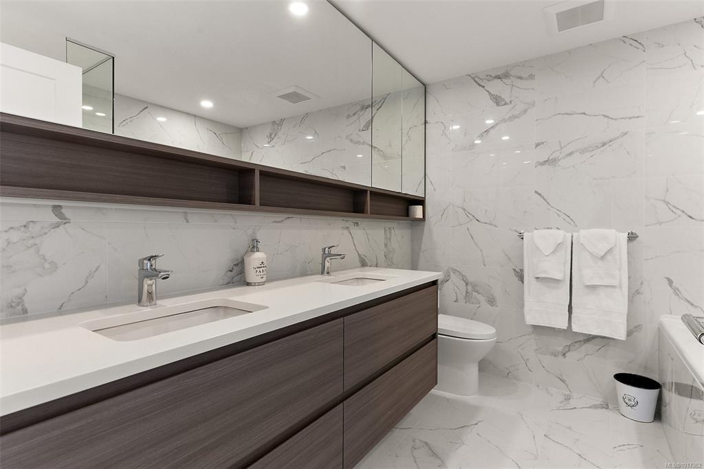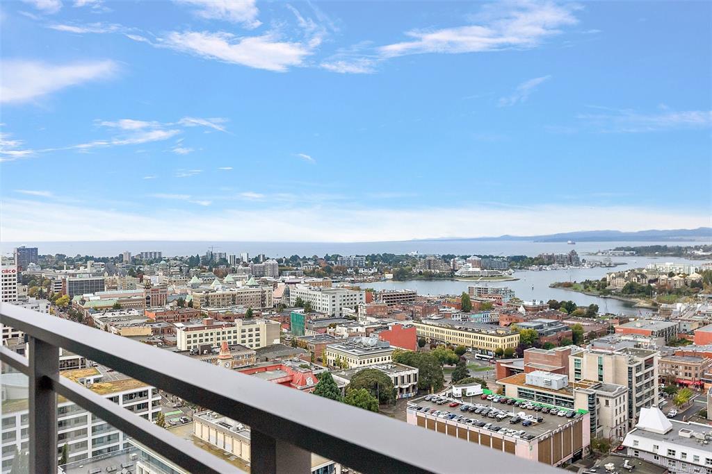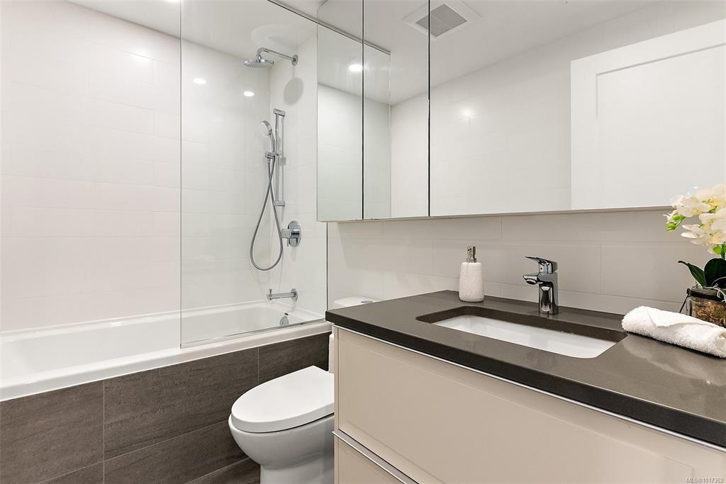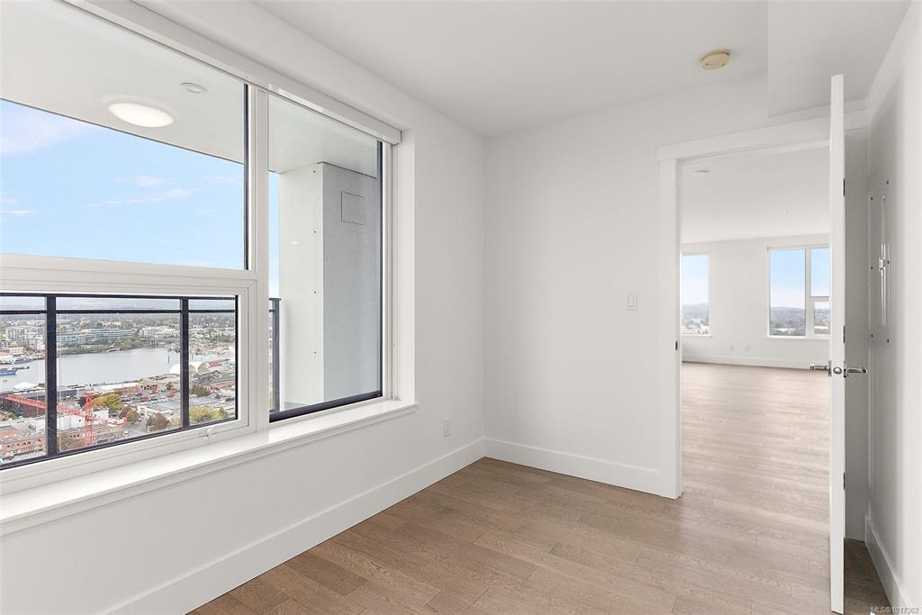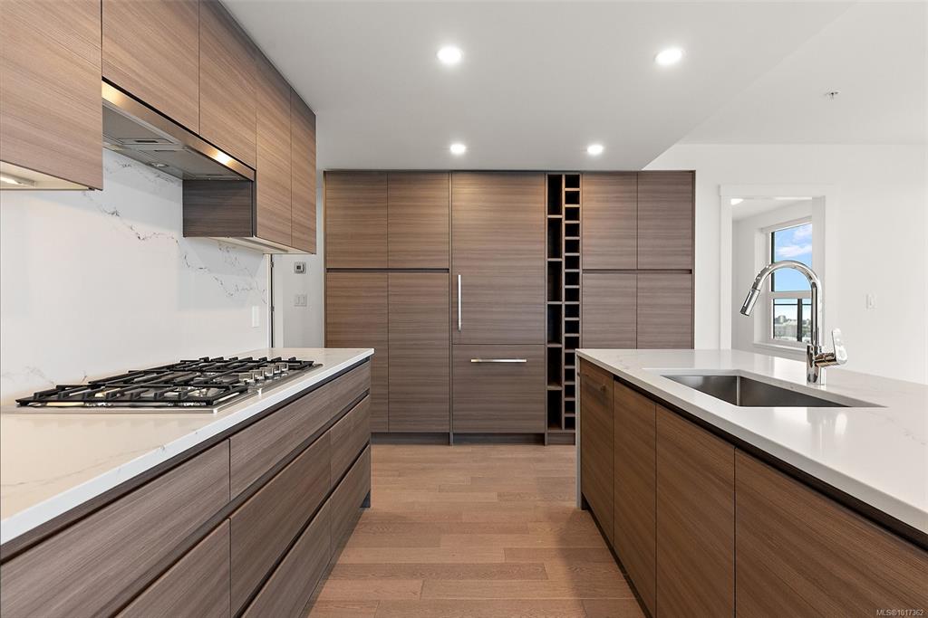 Open Sun, Oct 19th 11:30 AM - 1:00 PM. Better than new, this stunning Hudson Place One residence has never been lived in and GST is paid. Offering 2 bedrooms + den, 2 sumptuous bathrooms, and 2 side-by-side EV-ready parking stalls, this home defines modern luxury. Soaring floor-to-ceiling windows showcase sweeping west and north views of the city, harbour and Sooke Hills, while elevated finishes, premium Bosch appliances, and a sleek island anchor the chef-inspired kitchen. The thoughtful split-bedroom lay...