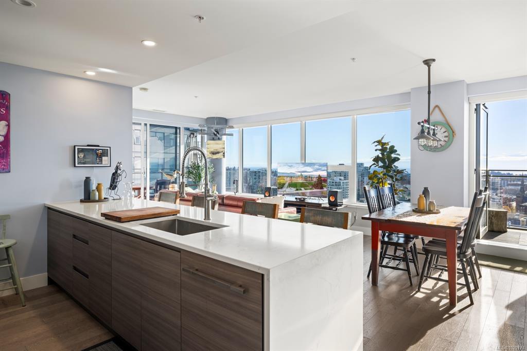 Experience elevated living in this sophisticated 21st-floor SE corner 3BR/2BA home at Hudson Place One, where floor-to-ceiling windows capture panoramic city, harbor + iconic Parliament views. Watch cruise ships arrive, seaplanes come and go, and the skyline glow after dark—an ever-changing West Coast backdrop. Sleek contemporary design, A/C, integrated Bosch appliances + a striking 10ft island anchor the chef-inspired kitchen, seamlessly connected to bright open living spaces. Three private balconies offer...