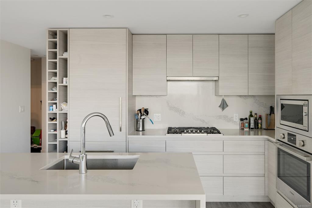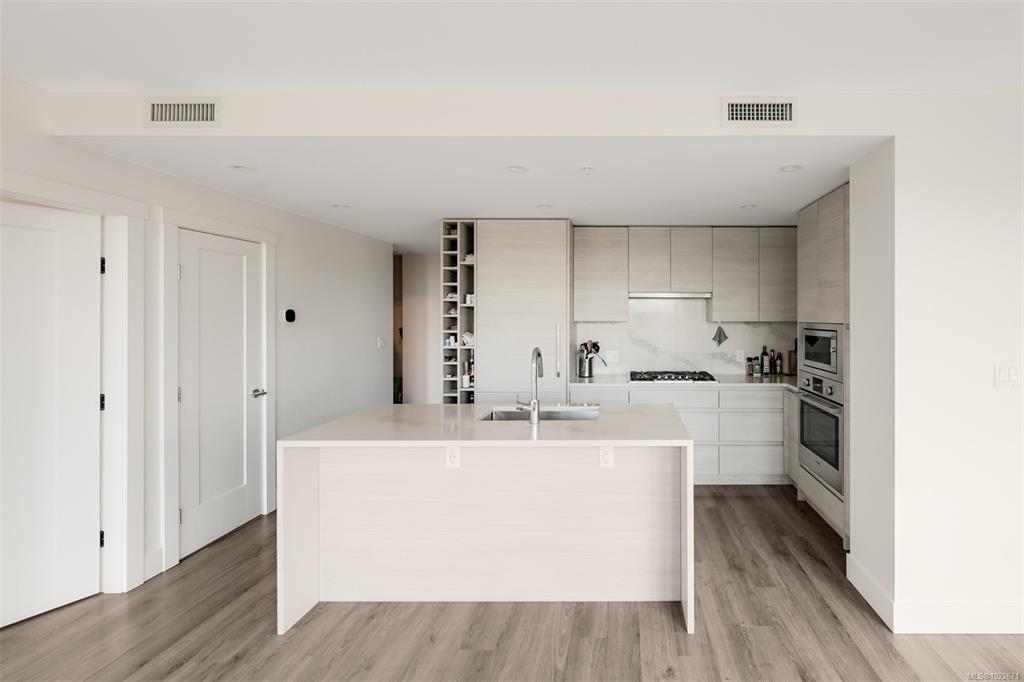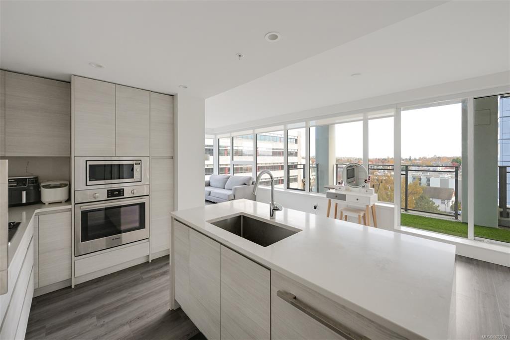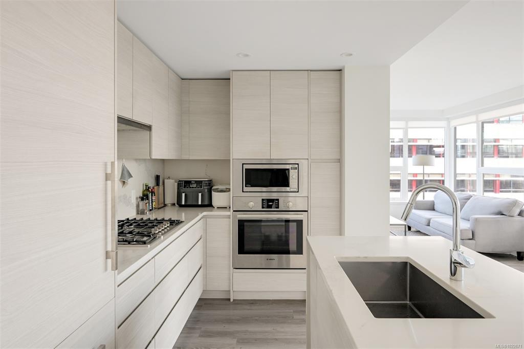 Welcome to the Hudson Place One, the centrepiece of Downtown Victoria's Skyline. Built by award winning developer Townline, this steel and concrete tower is known for its unparalleled amenities and walkability to everything Downtown has to offer. This 2 bed, 2 bath suite has high end finishings including an upscale kitchen fitted with quartz countertops, ample storage and designer Bosch appliances w/gas range. Light flooring extends into the sun filled living room with westerly ocean and city views, and din...