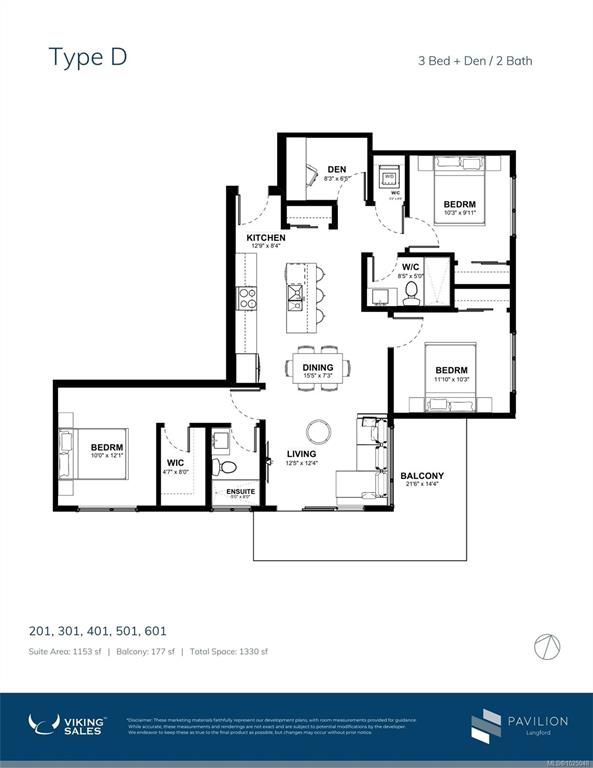 This unique 3-bedroom PLUS DEN is rare for Langford! Features 9-foot Ceilings that boast Southwest Exposure. Pavilion One is a brand-new six-story condominium residence that redefines modern urban living. The newest Condo project from Viking Properties, move-in ready June/July 2026. This thoughtfully designed development features 60 spacious and elegantly appointed units, offering a perfect blend of style, comfort, and convenience in one of the area's most desirable neighborhoods. Perfectly located in the h...