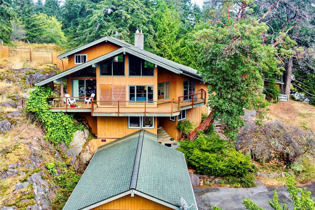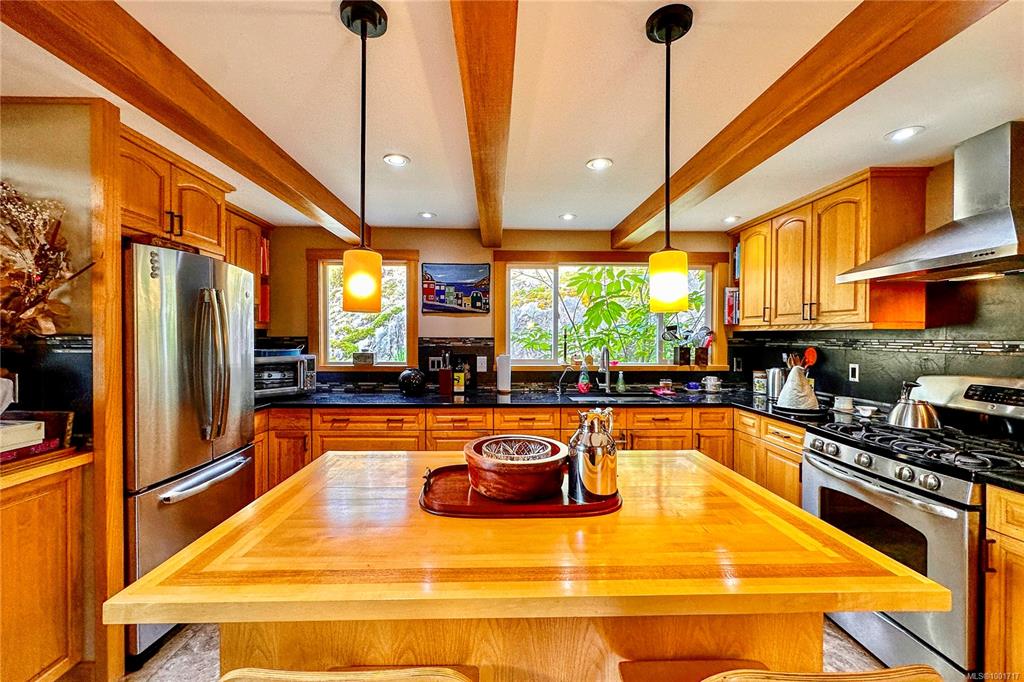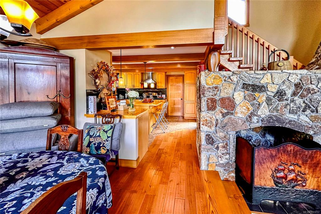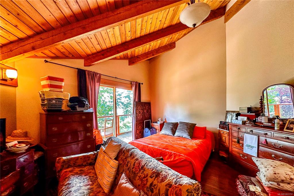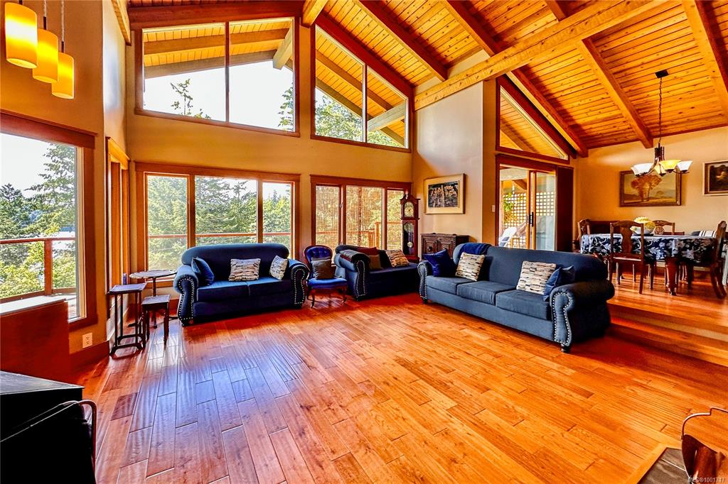 Remarkable ocean-view home overlooking Gowlland Harbour on Quadra Island's west side. This stunning family residence features post and beam construction with high vaulted ceilings. The lower level includes a spacious family room, a bedroom, and a guest suite with a four-piece bathroom and access to a private deck. The main level offers an open floor plan encompassing the kitchen, dining, and living areas. The kitchen boasts oak cabinets, a custom wood island, tile flooring, and stainless steel appliances. A...