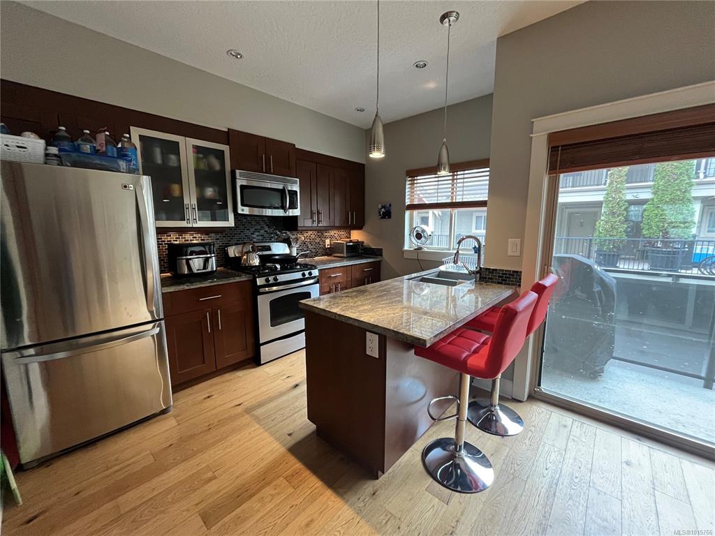 With mixed use zoning this townhome has great space and a wonderful Langford location that is close to all amenities. Offering 3-levels, this spacious 2-bedroom, and 4 bath is tucked back off of the street so that you can have peace and quiet too. Features include: 9-foot ceilings, an open kitchen, dining area, plus a living room with gas fireplace. Upstairs you will find 2 large bedrooms each with its own ensuite, and super convenient laundry space. On the lower level you will find a rec room/hobby room ...