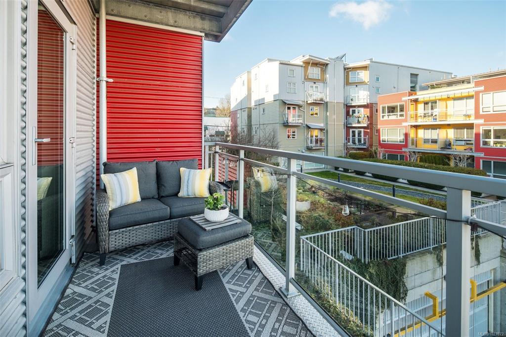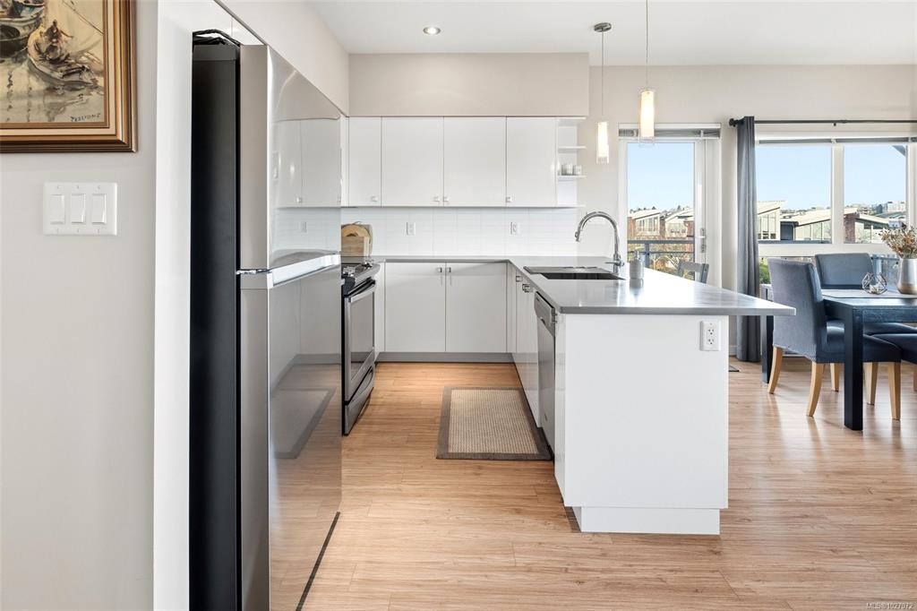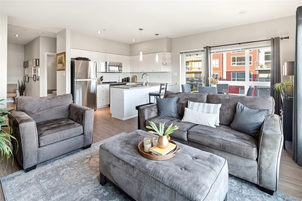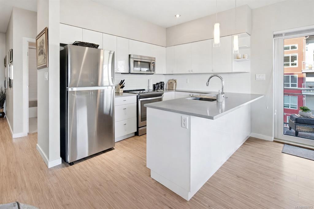 Welcome to Bonds Landing at the Railyards - a modern, vibrant community offering the best of urban living and outdoor recreation at your doorstep. Located in desirable Vic West, this charming collection of condos and townhomes sits along the Selkirk Waterway, steps to groceries, restaurants, cafés, and the Galloping Goose Trail. This immaculate corner suite features the largest one-bedroom floor plan in the complex with an open-concept layout, spacious kitchen, dining area, and generous living room. The pri...