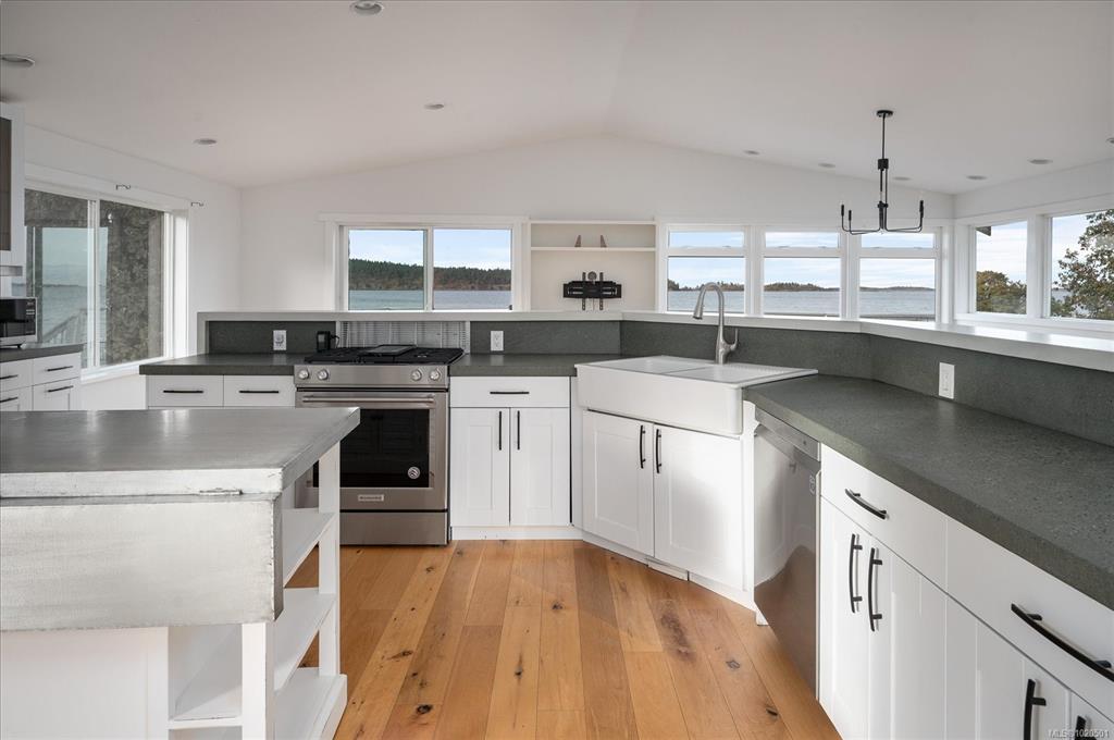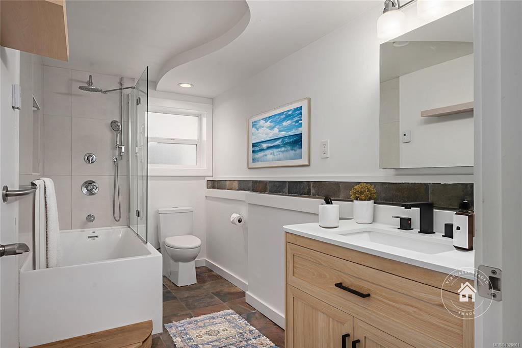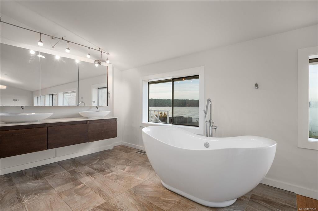 Stunning walk-on waterfront home on arguably the best beach in Lantzville! Enjoy crabbing, kayaking, and beach life from your own backyard. This approx. 4000 sq ft, updated 4 bed/3 bath home sits on a private .38-acre lot at the end of a quiet road—peaceful yet close to everything you need. Incredible ocean, mountain & Nanoose Point views fill the home with natural beauty. Excellent layout for a home office, Airbnb, or guest space. Over 25m (80 ft) of true walk-on waterfront, fully fenced yard for pets...