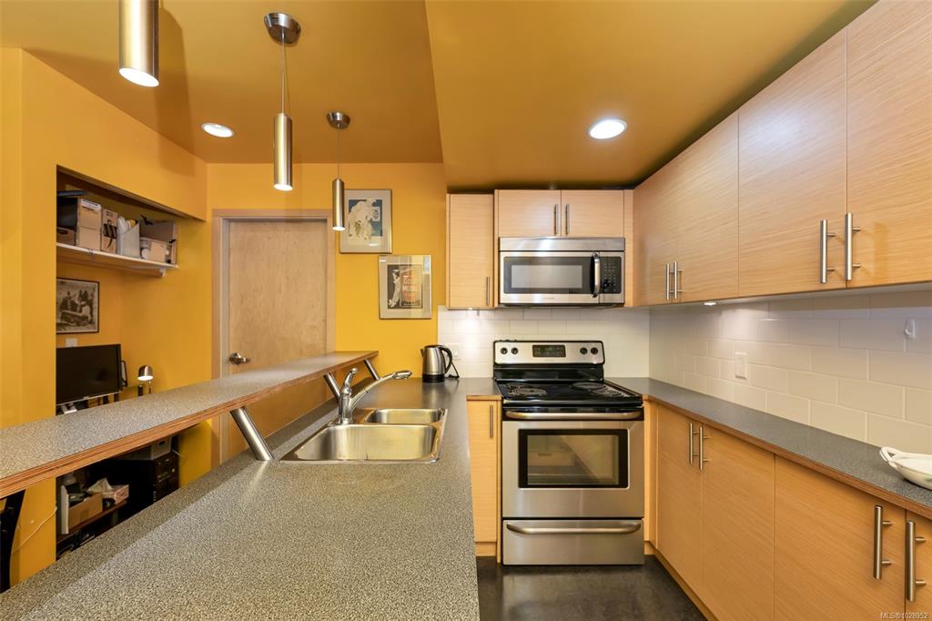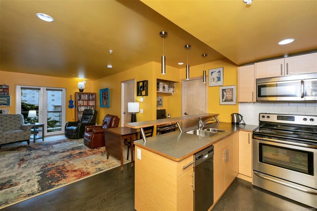 Chic one-bedroom condo in Bonds Landing featuring an open-concept kitchen with excellent pantry storage and newer microwave, range hood, and refrigerator. Bright living spaces include updated blinds and a phantom screen leading to the balcony, creating an easy indoor-outdoor flow for morning coffee or evening wind-downs. The location is exceptional—steps to Fed Urban Farm, artisan bakeries - Fry’s Bakery & Fol Epi, and outstanding coffee and charcuterie at Caffe Fantastico’s Bar-Deli. Enjoy nearby Banfield ...