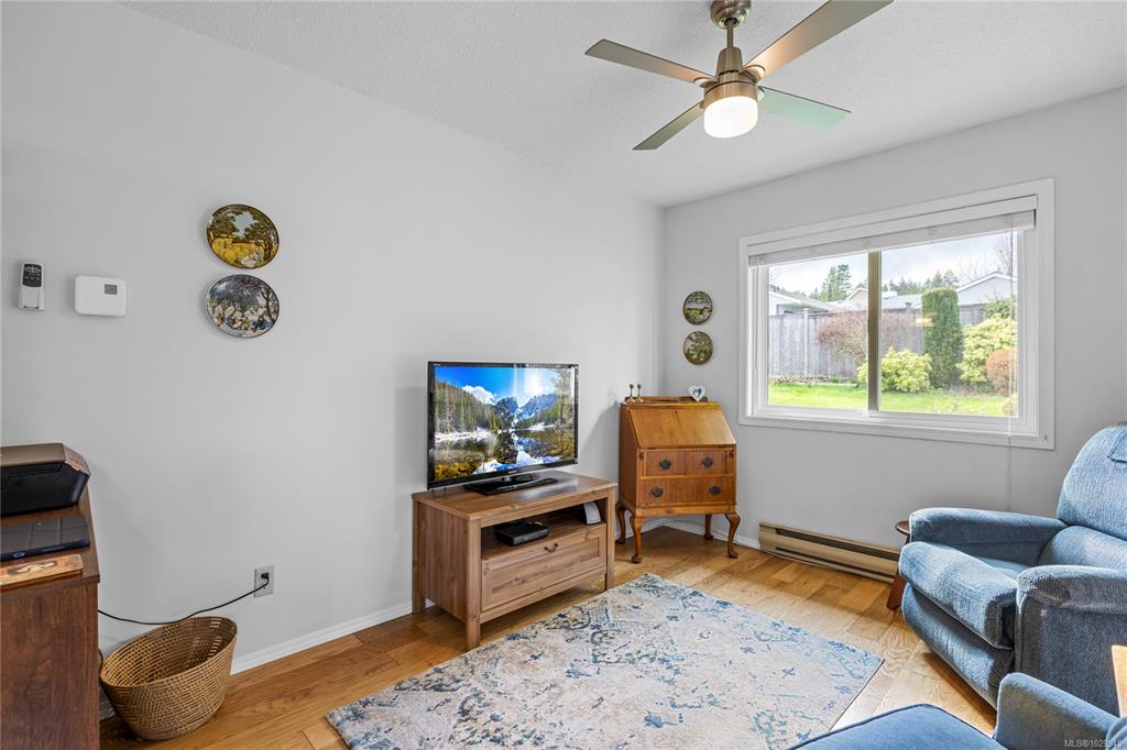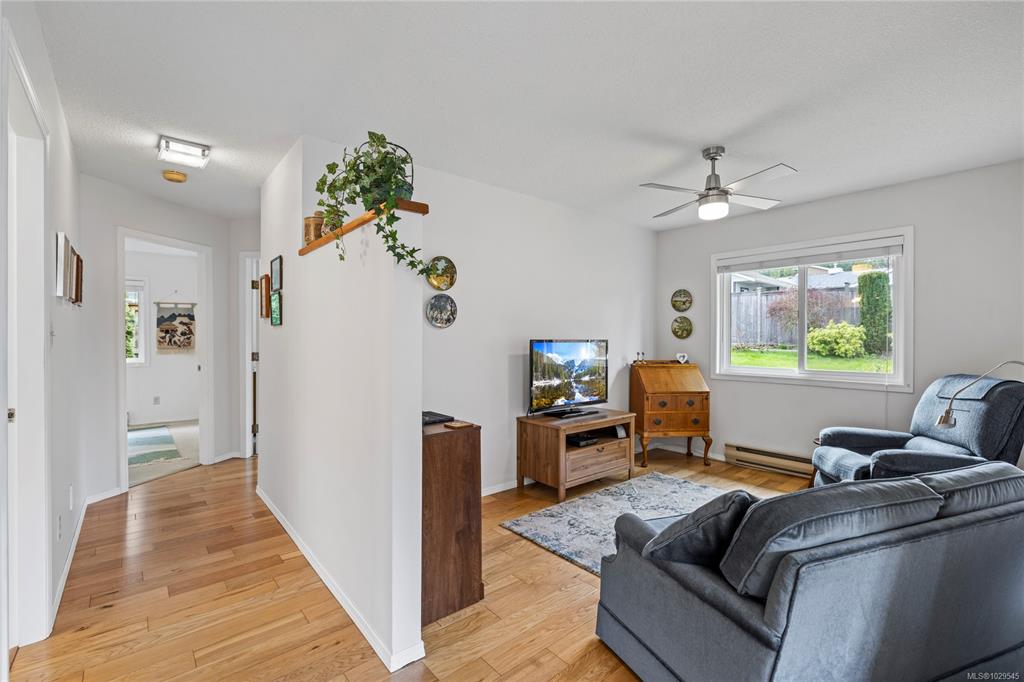 Downtown Qualicum Beach Rancher! Immaculate, one owner, 2 bedroom + Den/family room , 1356sf home, carefully updated over the years with vinyl windows, hardwood flooring, fresh paint, gutters with leaf guard ,and in 2026, a new HW tank! Move in and enjoy the pretty west facing garden with mature plantings that backs on to the lane, so there is no neighbour in behind! A lovely covered patio allows enjoyment of the birds year ‘round, and the single garage protects your car from the winter elements. The second...