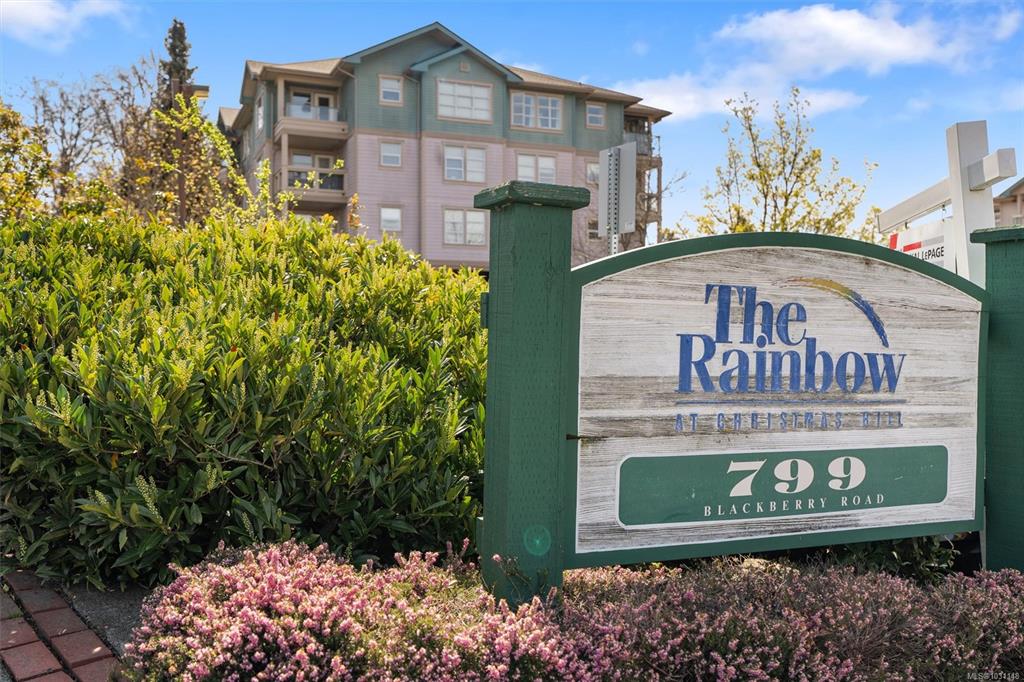Welcome to The Rainbow at Christmas Hill. This spacious 2-bed, 2-bath condo offers nearly 1,000 sq. ft. of functional living space with beautiful, southwest exposure, and an almost 300 sq ft main bedroom! Notable updates include fresh paint and new vinyl plank flooring (2023). Residents enjoy secure underground parking, shared bike storage and peace of mind with a rain-screened exterior, a new roof (2025), balcony repairs (2019), and a proactive, well-run strata. The location is unbeatable: you are minutes ...