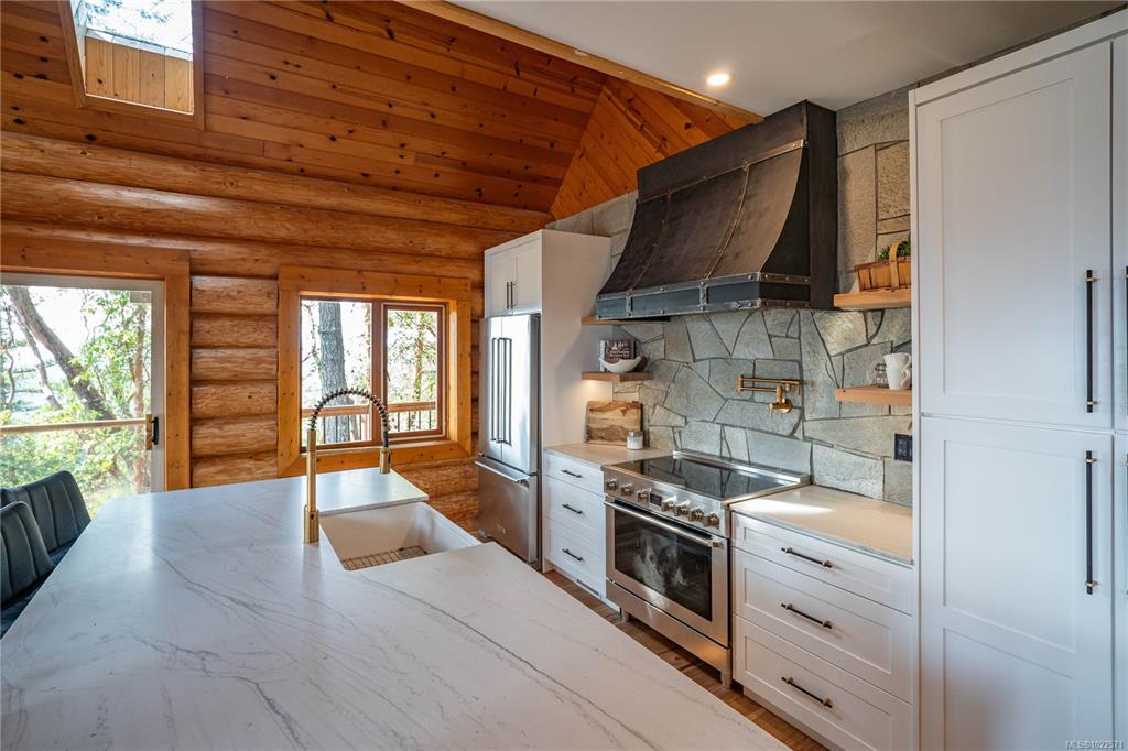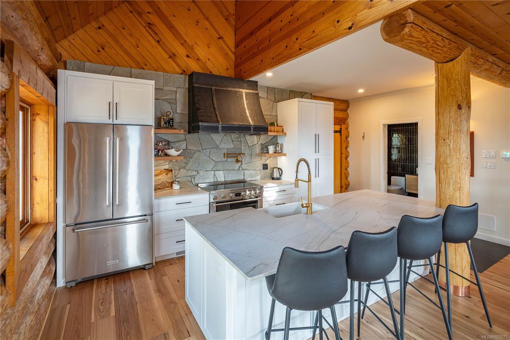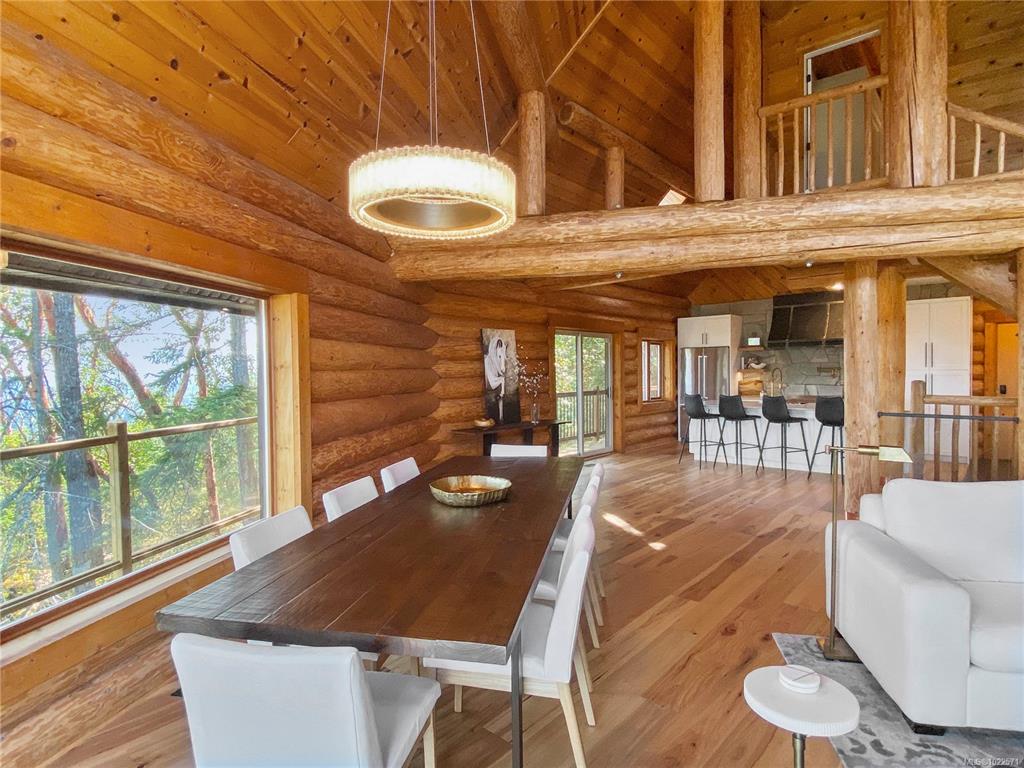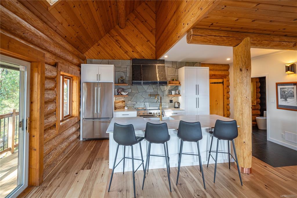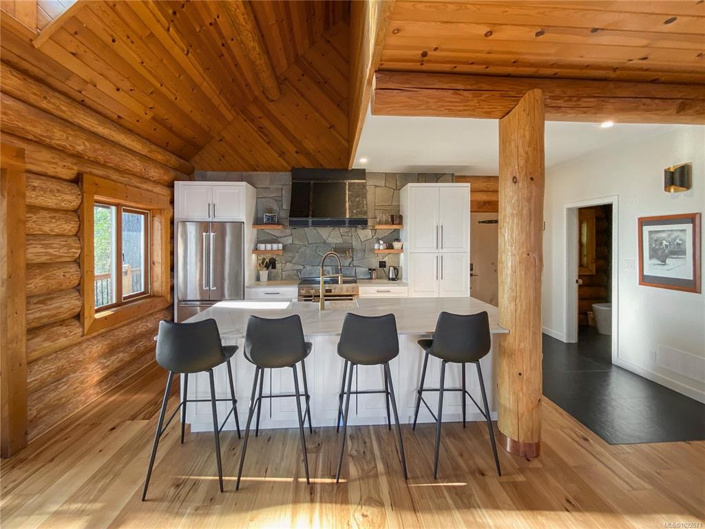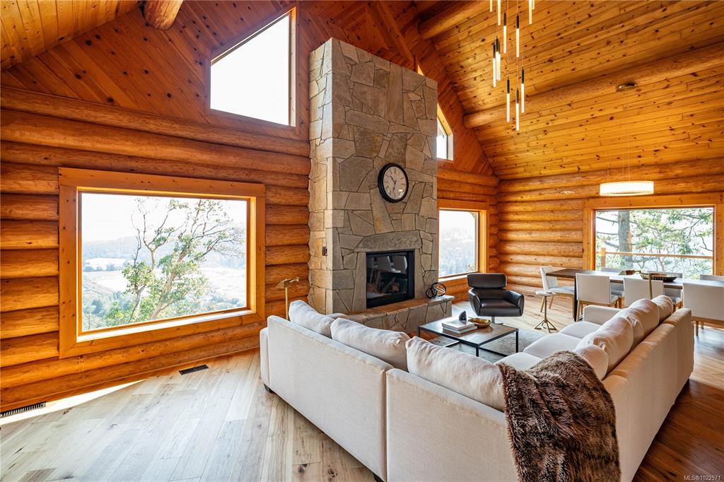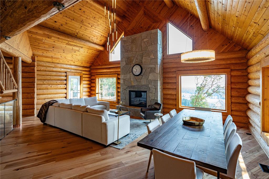 Set high above Vancouver Island’s breathtaking landscape, this remarkable 16+ acre property offers sweeping views of the ocean, forested valleys, and distant mountain peaks. The fully updated 3-bedroom, 2.5-bath log home blends classic West Coast character with modern comfort. Inside, vaulted ceilings, warm hardwood floors, and a cozy fireplace define an inviting main level ideal for everyday living and hosting. The open-concept kitchen, living, and dining areas showcase quartz countertops, maple cabinetry,...