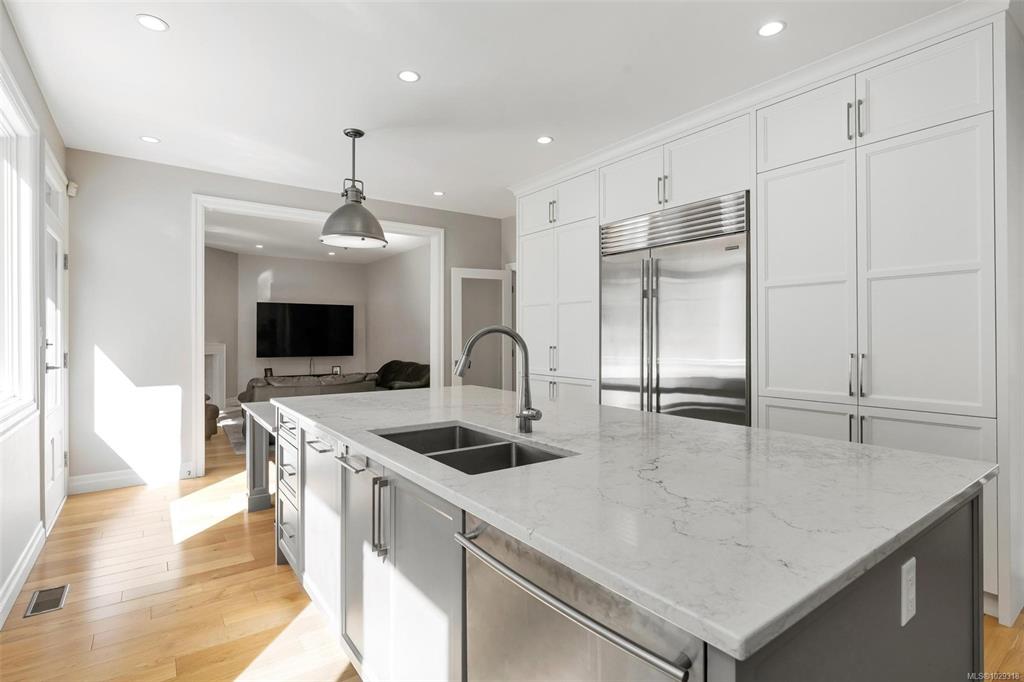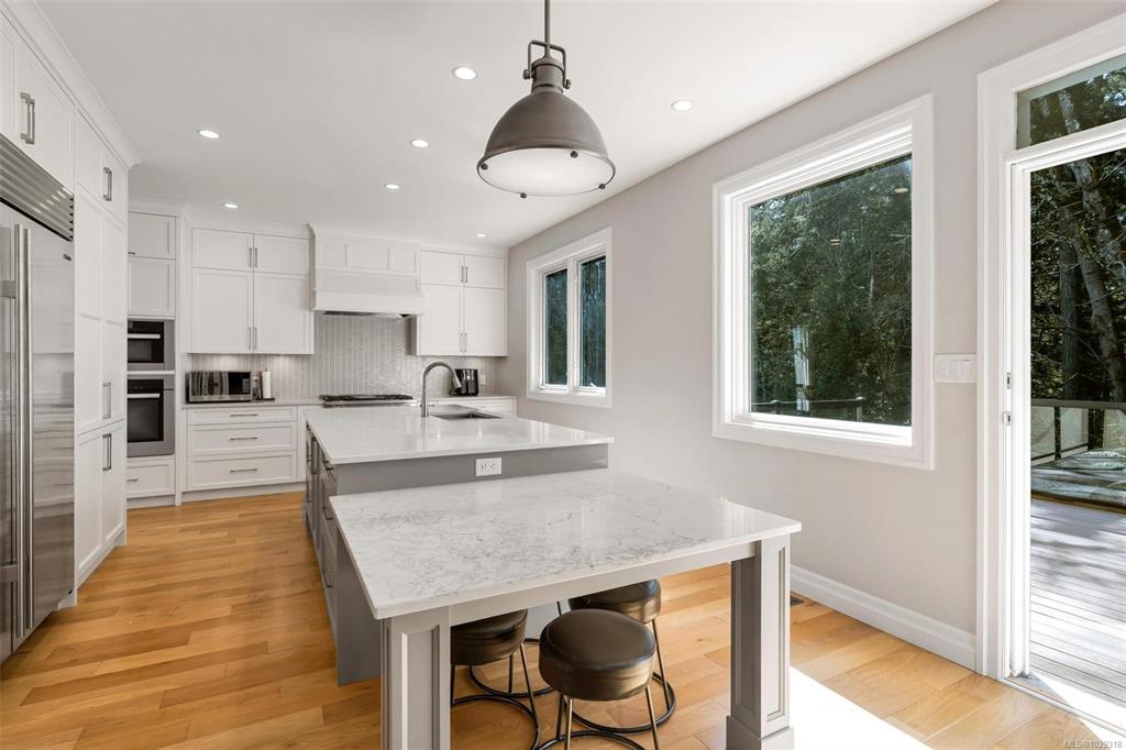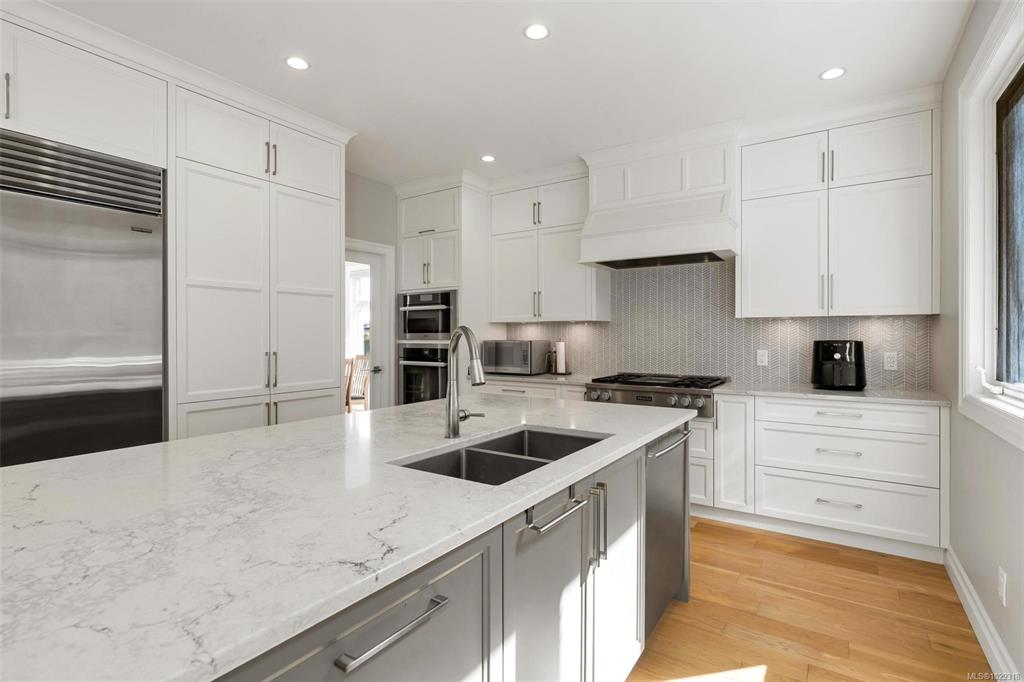 Absolutely stunning family home on a quiet no-through street atop prestigious Cordova Bay Ridge. Offering over 4,300 sq.ft. of beautifully renovated living space, this residence showcases exceptional quality and modern design throughout. The main level features a showpiece kitchen with oversized island, Sub-Zero fridge, Miele appliances, quartz countertops, and custom millwork. Recent updates include hardwood flooring, trim, and paint throughout. Upstairs offers 3 spacious bedrooms, including a luxurious pr...