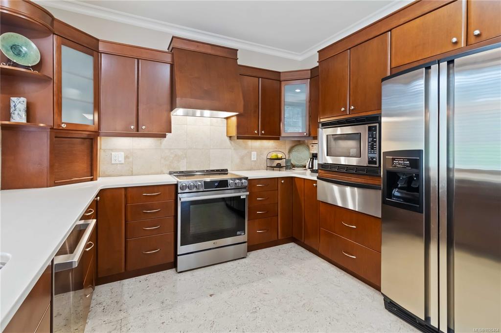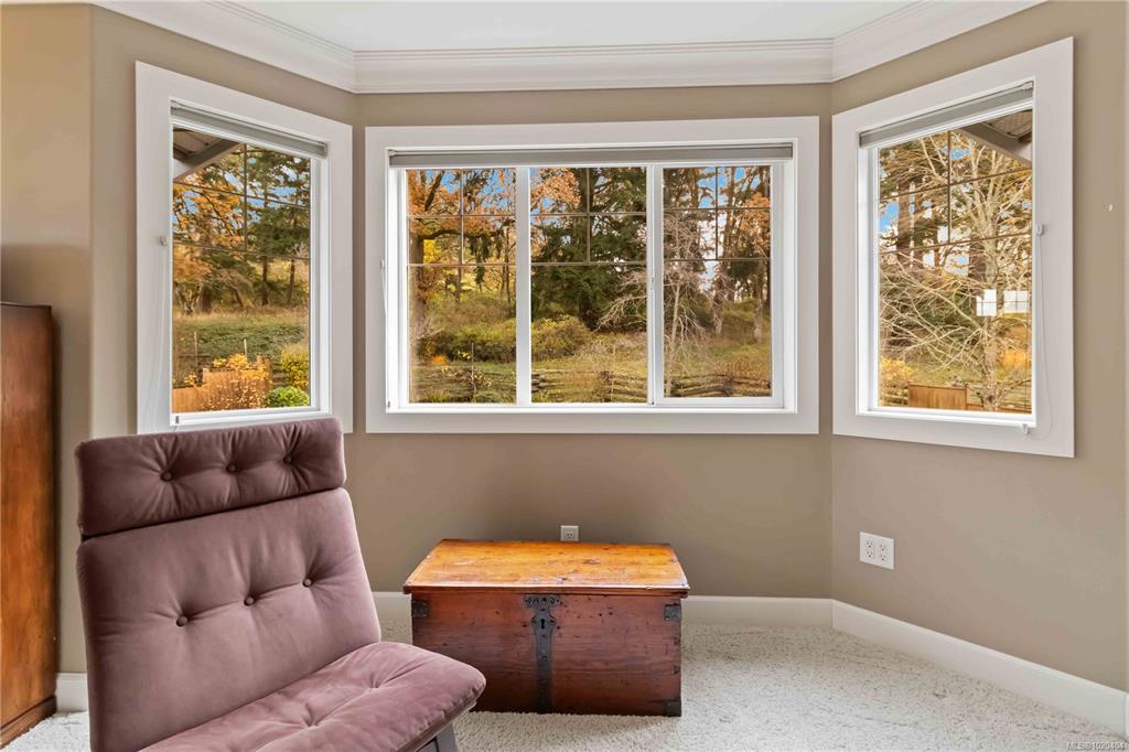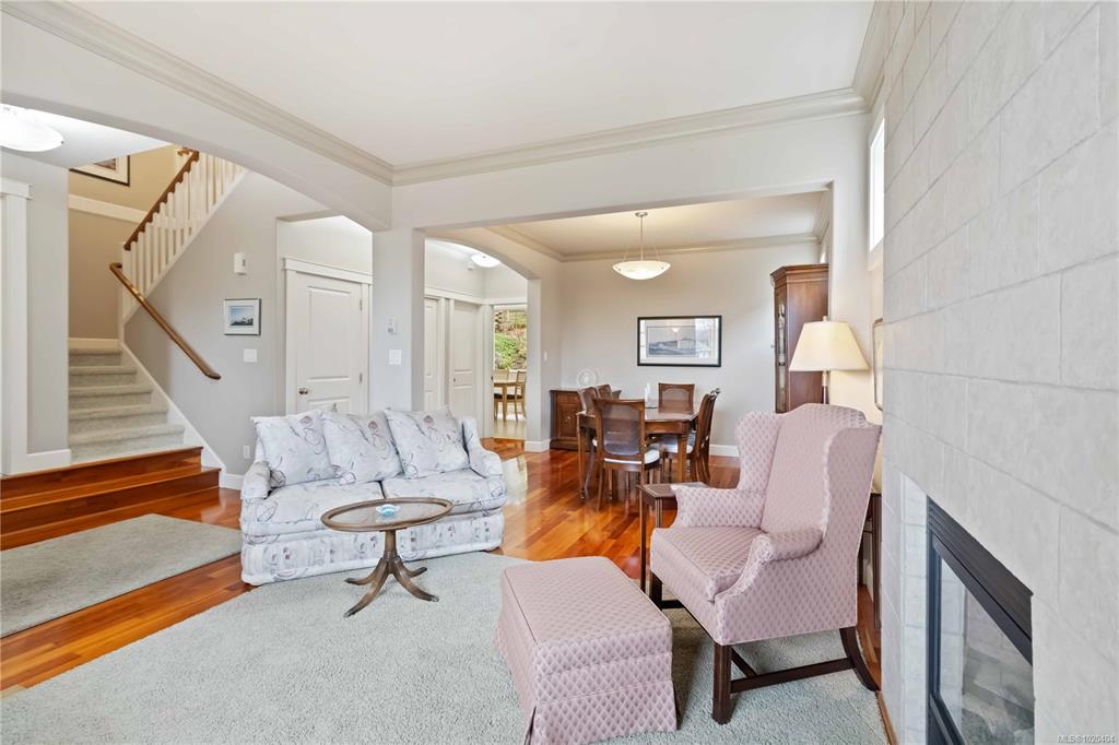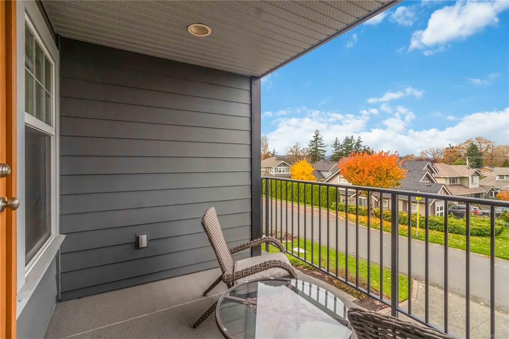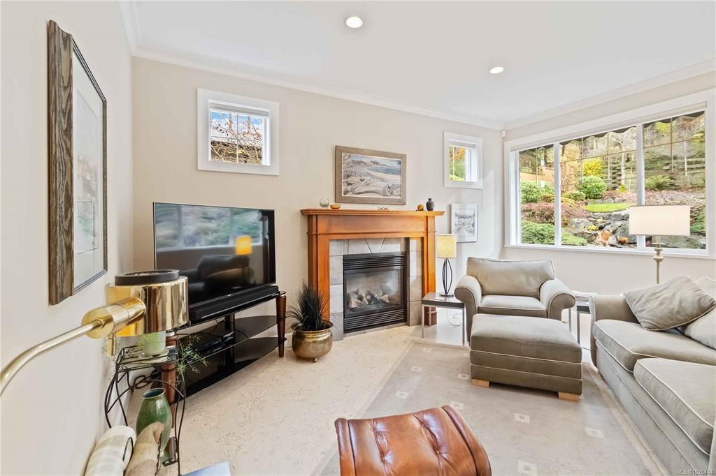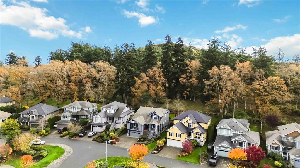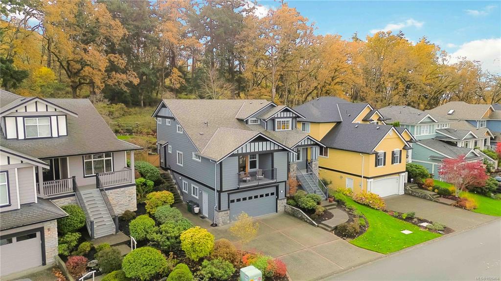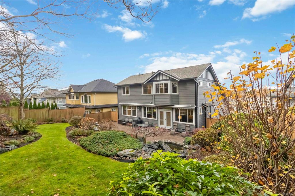 ROGERS FARM DEVELOPMENT. Rare & Special find in this highly sought-after enclave of designer homes. Backing onto the Gary Oak forest of Christmas Hill Nature Sanctuary, you're assured privacy & serenity as you enjoy the view from all principal rooms of this METICULOUSLY kept & maintained builders home -1st time on market! Sunrise & all-day sun on S.facing entertainment sized patio & GORGEOUS landscaped yard (pond/waterfall feature). Grand front porch & balcony offer Sooke Hill sunset views. SPACIOUS FLOORPL...