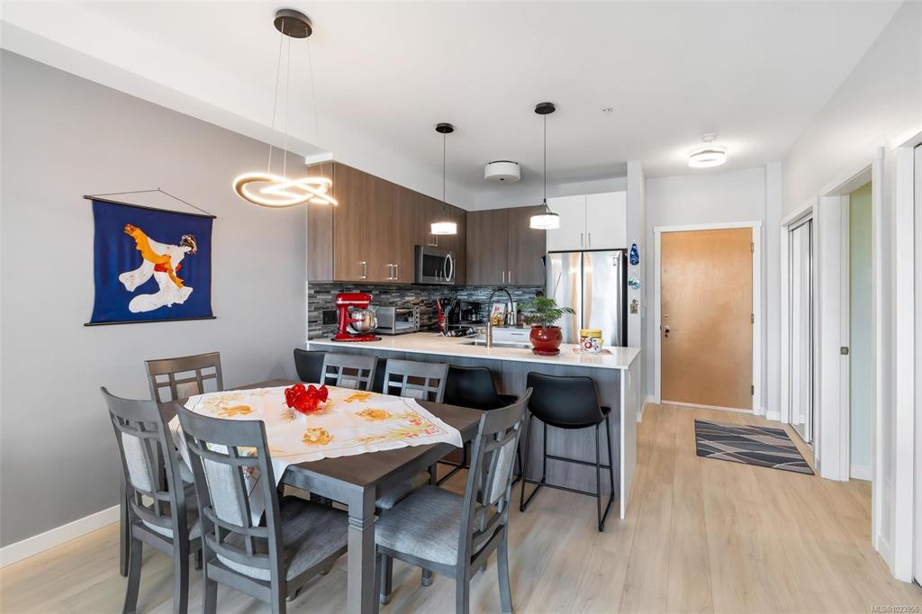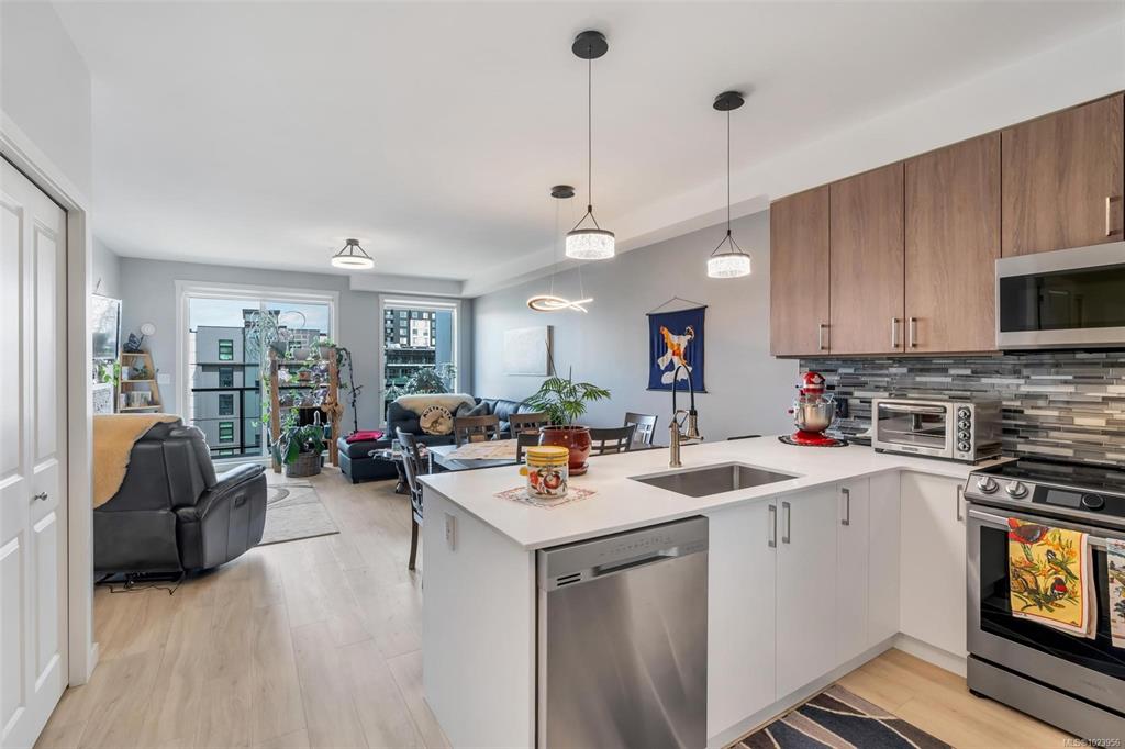 Bright and beautiful 2 bed, 2 bath condo in Pacific Trilogy Two—a modern 6-storey building in the heart of downtown Langford. This like new home features a functional open-concept layout with 9-ft ceilings, a chef’s kitchen with quartz countertops and stainless appliances, and spacious living/dining areas with an electric fireplace and access to a sunny balcony—perfect for your morning coffee. The primary bedroom includes a 3-piece ensuite with built-in closet organizers. Comfort is ensured year-round with ...