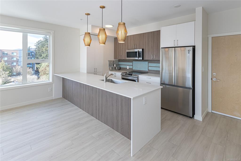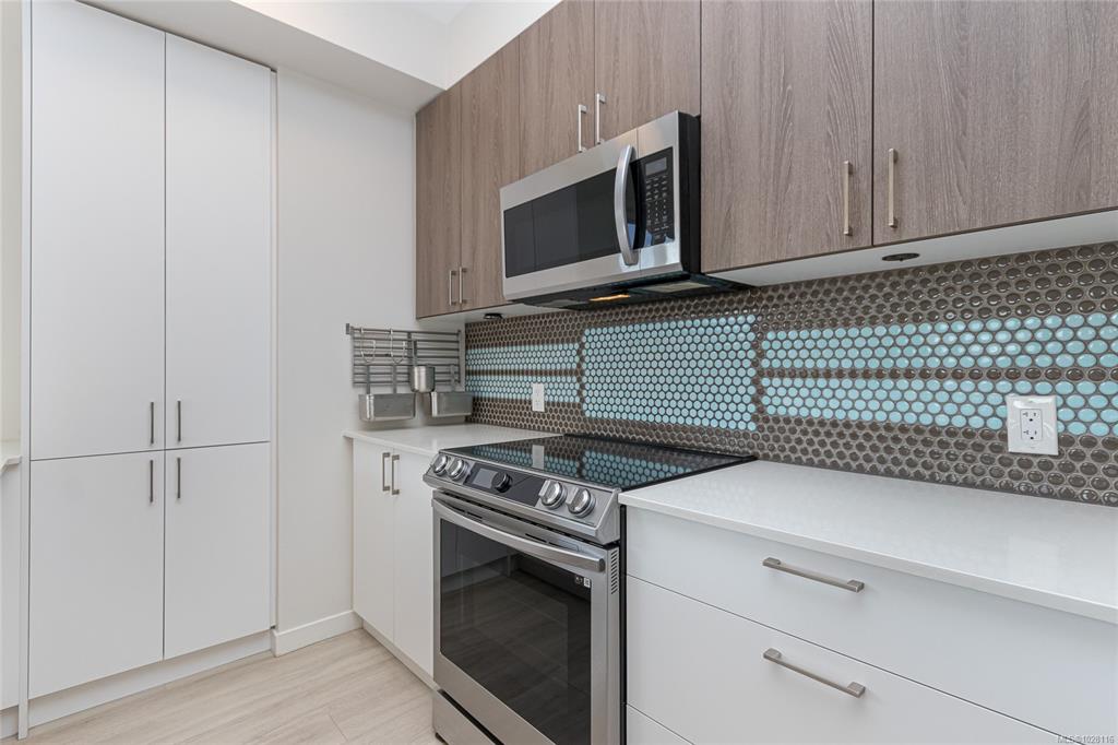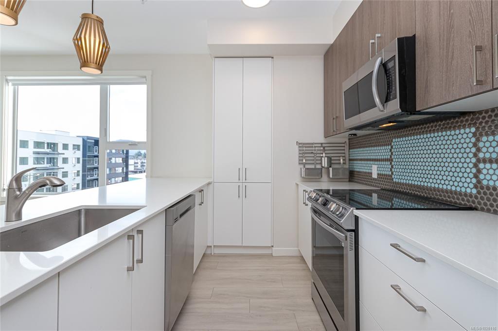 This bright, south-facing CORNER UNIT condo offers 1,026 sq. ft. of thoughtfully designed living space with two bedrooms and two bathrooms. The open-concept main living area features 9-foot ceilings and large windows, filling the home with natural light throughout the day. The kitchen has been upgraded by the current owner with new tile and stylish pendant lighting, and features contemporary two-tone European cabinetry with soft-close drawers and hinges, complemented by quartz countertops. The living room i...